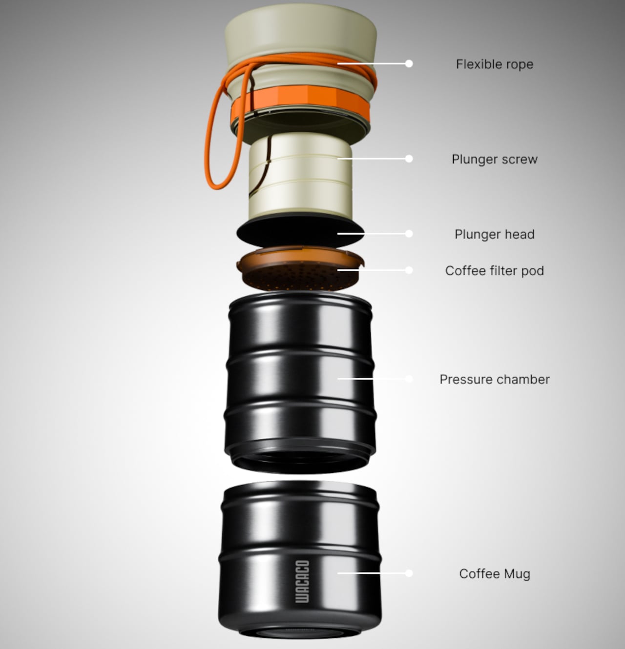 The internal architecture breaks down into three main compartments: the pressure chamber, the coffee mug, and the top assembly with plunger and filter pod. Each section is easy to clean, and the decomposable coffee filter pods can be thrown away after use, cutting down on rinsing and scrubbing in awkward places. The “fewer parts, fewer headaches” philosophy keeps the system simple without compromising the quality of the brew or the convenience of the mug.