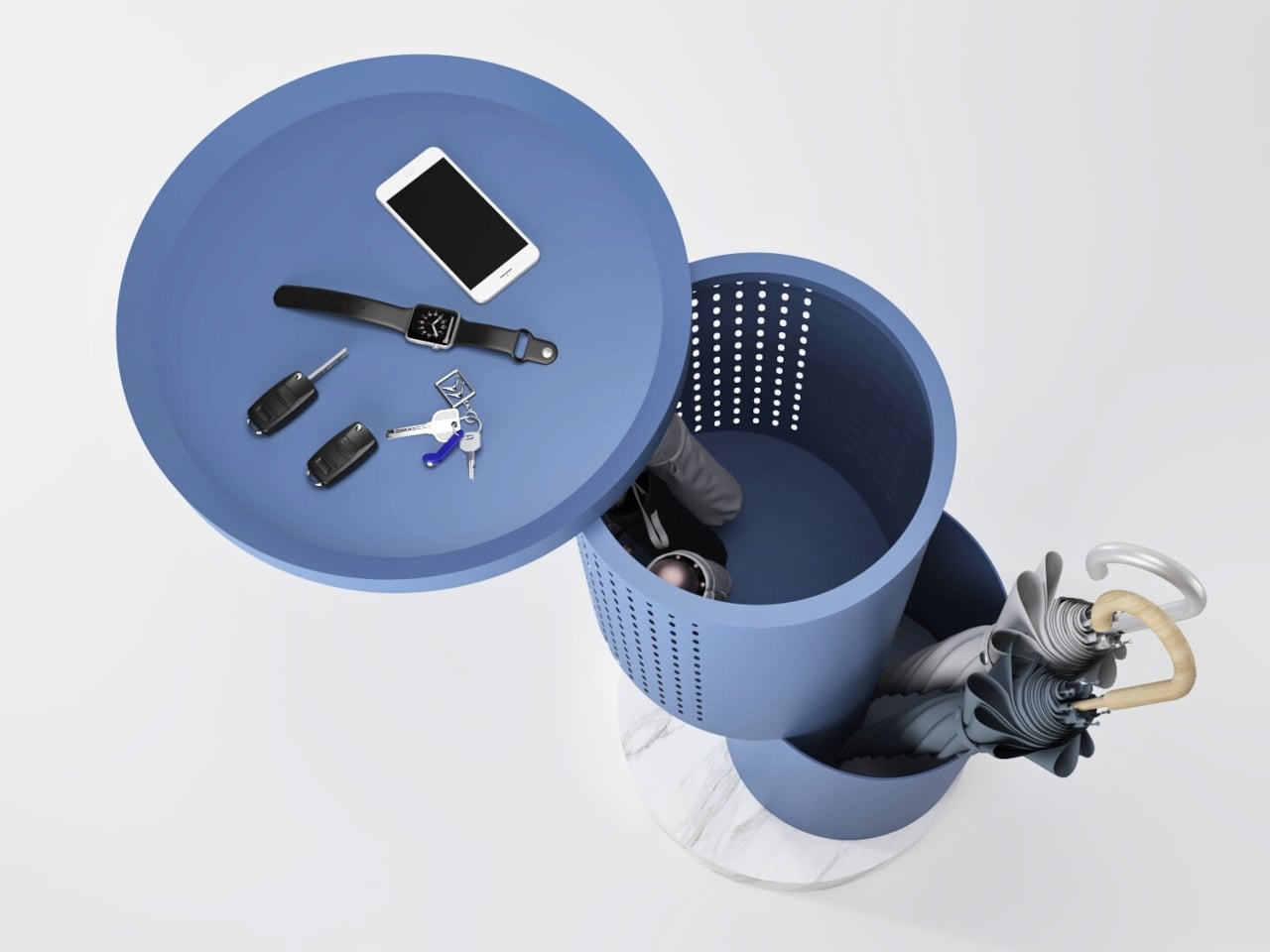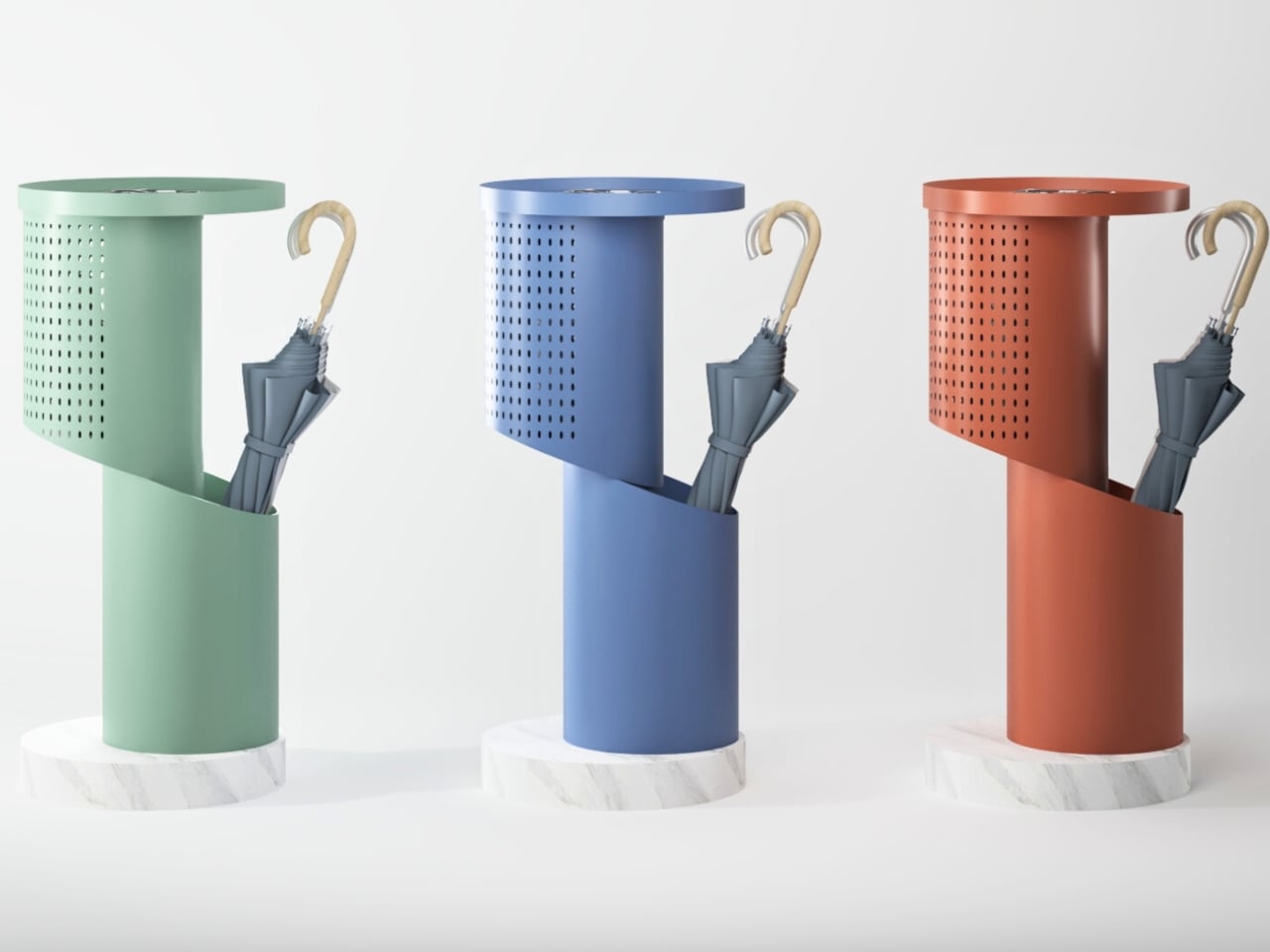 Split reframes a neglected object. It does not try to reinvent storage, it simply layers a console, a pegboard, and a ventilated umbrella stand into one compact cylinder. It feels like a quiet but meaningful upgrade over the usual metal tube shoved in a corner. People who care about the small transitions in their day will love the idea of an entryway piece that catches umbrellas and everyday carry with a bit of elegance.