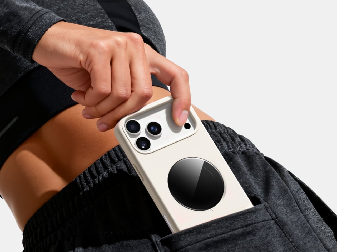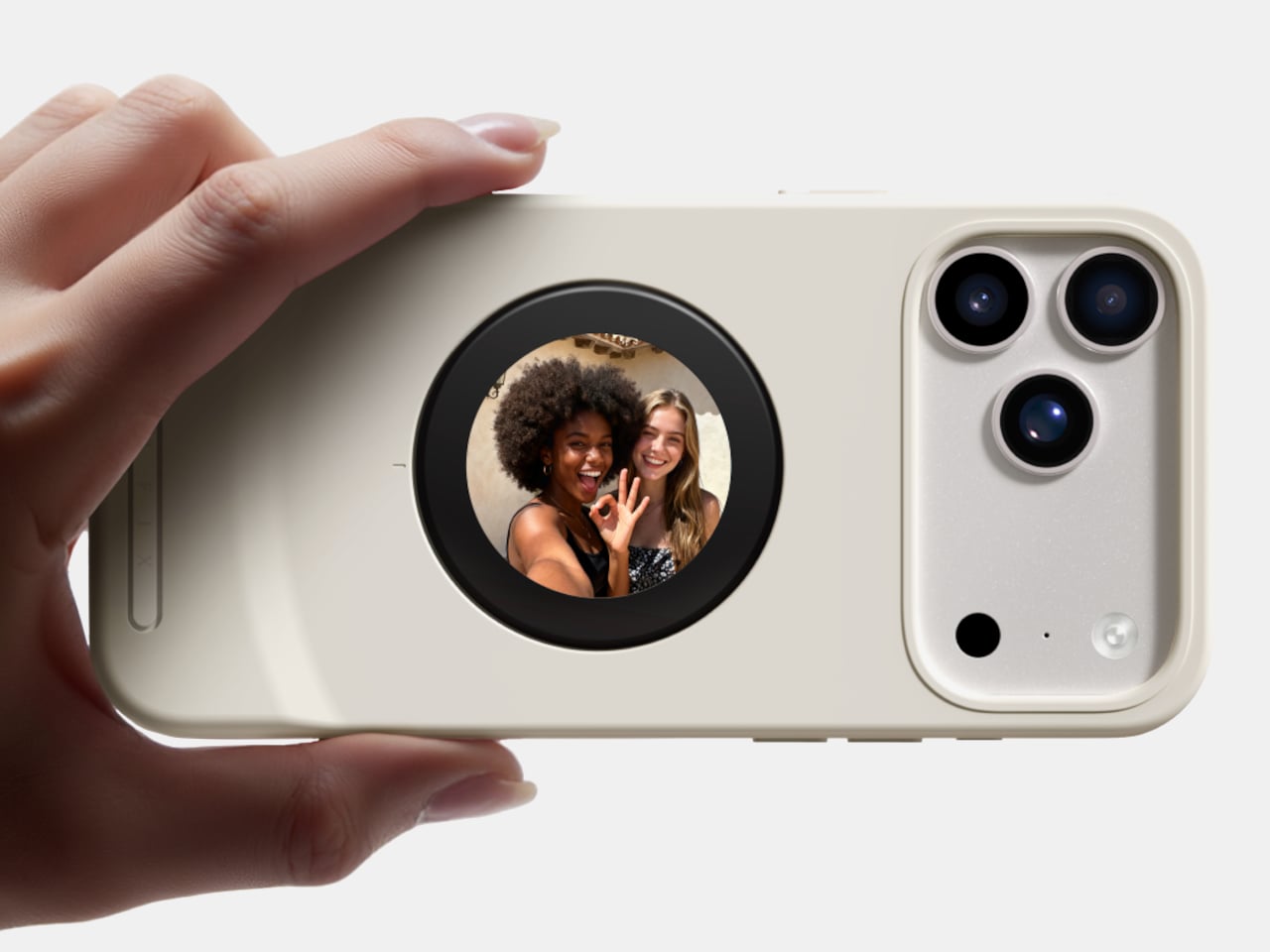 Selfix is made from high-quality TPU and comes in Oat White, Blush Pink, and Midnight Black, sized to match the 17 Pro and Pro Max. It adds some thickness, bringing the total to 17mm, but in return, you get a grippy shell, a second screen, and a hidden storage bay. The design aims to look like a natural extension of the phone rather than a bolt-on camera rig or accessory that screams afterthought.