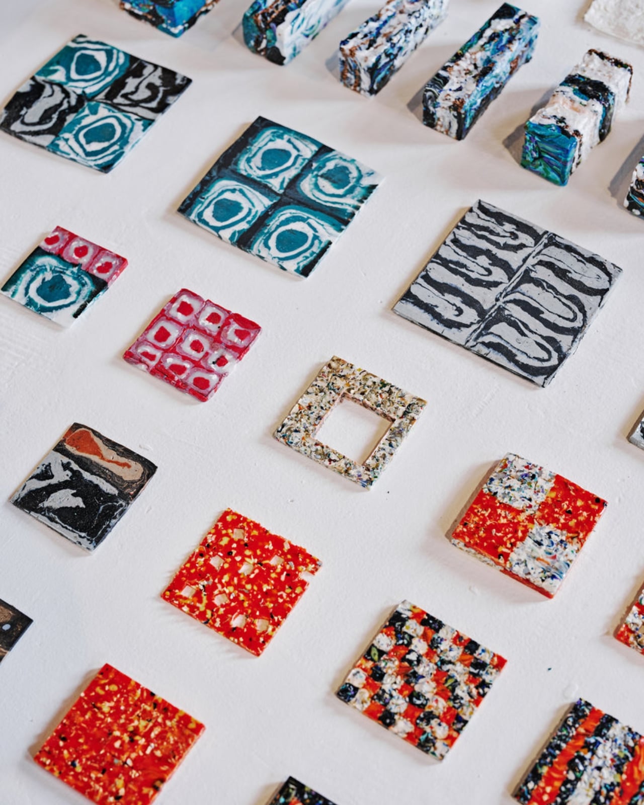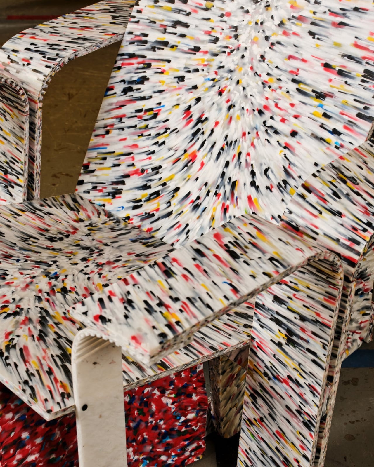 What I love most is that they didn’t try to hide the recycled nature of these pieces. Surface variations, including marbled color patterns and irregular textures, were retained as integral elements of the final designs, so each chair has this gorgeous, swirly aesthetic that screams “I used to be something else.” The imperfections became the personality.