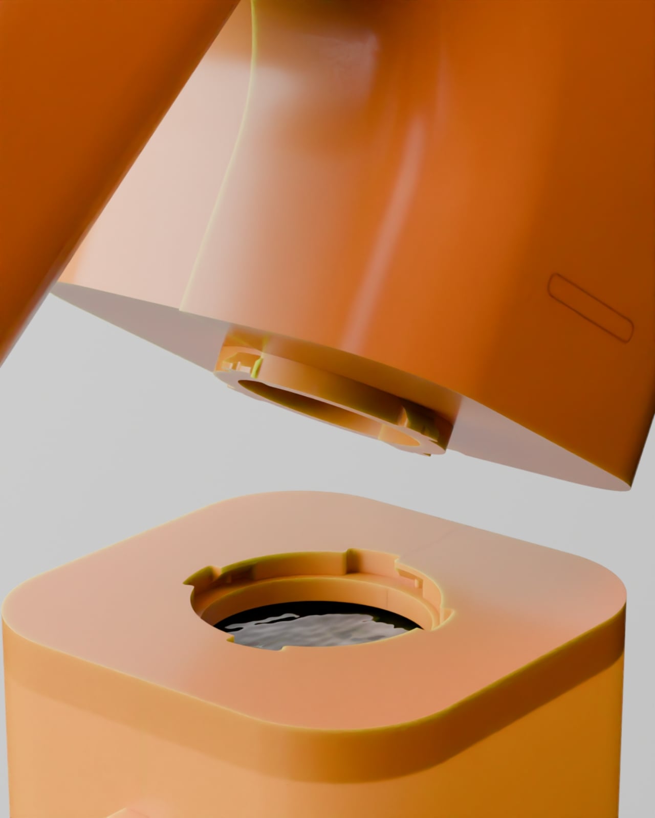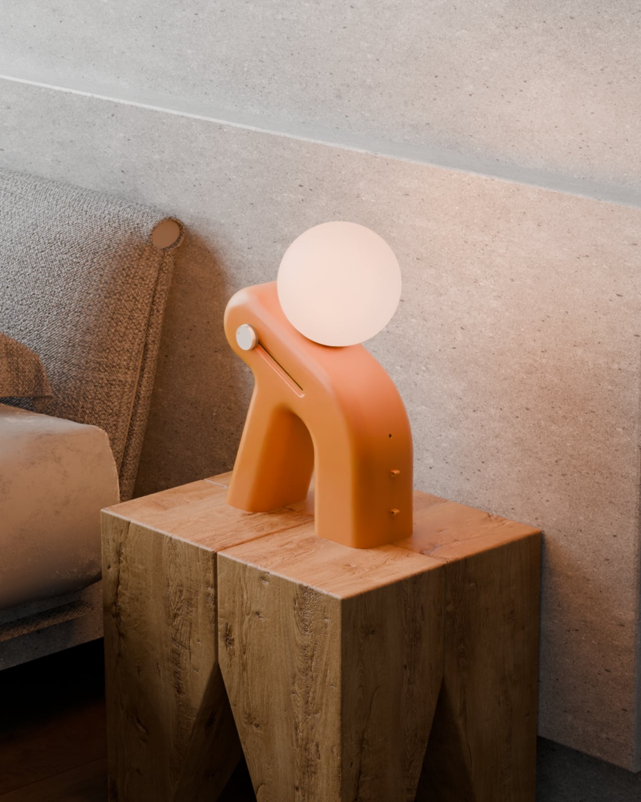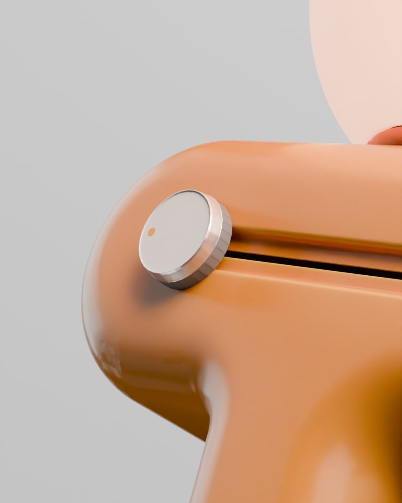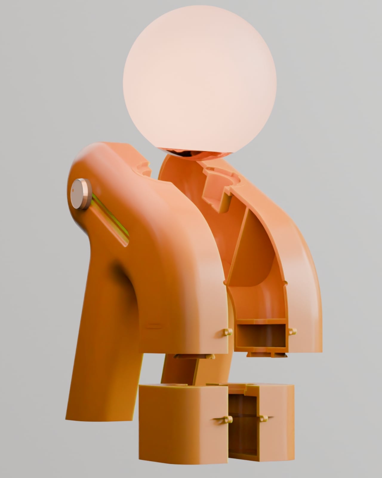 But here’s where the design really shines. That leaning posture isn’t just for show. It creates this almost human-like presence that feels comforting rather than clinical. The warm terracotta color and those organic curves make it look more like a piece of art than a piece of technology. You could absolutely see this sitting in a carefully curated room on Instagram, but it’s also genuinely functional. The glowing orb on top doubles as the light source, while the body houses the aroma diffuser, visible in those beautifully detailed close-ups.