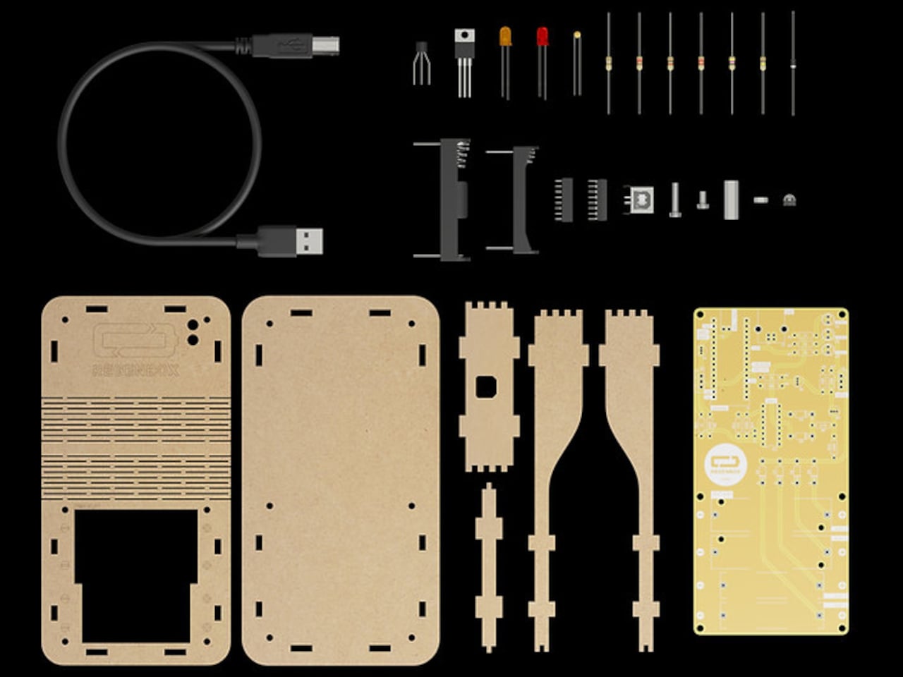 RegenBox 1 is a kit that arrives as a flat collection of components, a printed circuit board, electronic parts, and laser-cut wooden panels. Once assembled, it becomes a USB-powered regenerator for AA and AAA alkaline batteries, designed for electronics hobbyists rather than casual users. The wooden case and visible PCB make it feel more like a lab instrument or workshop project than a sealed plastic charger, and building it yourself is half the point.
