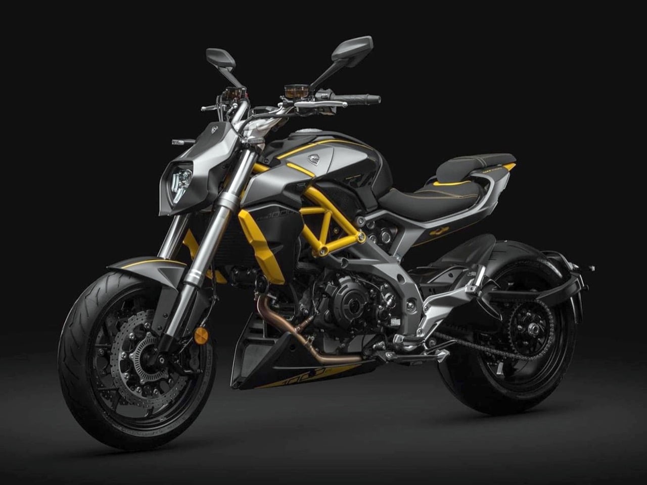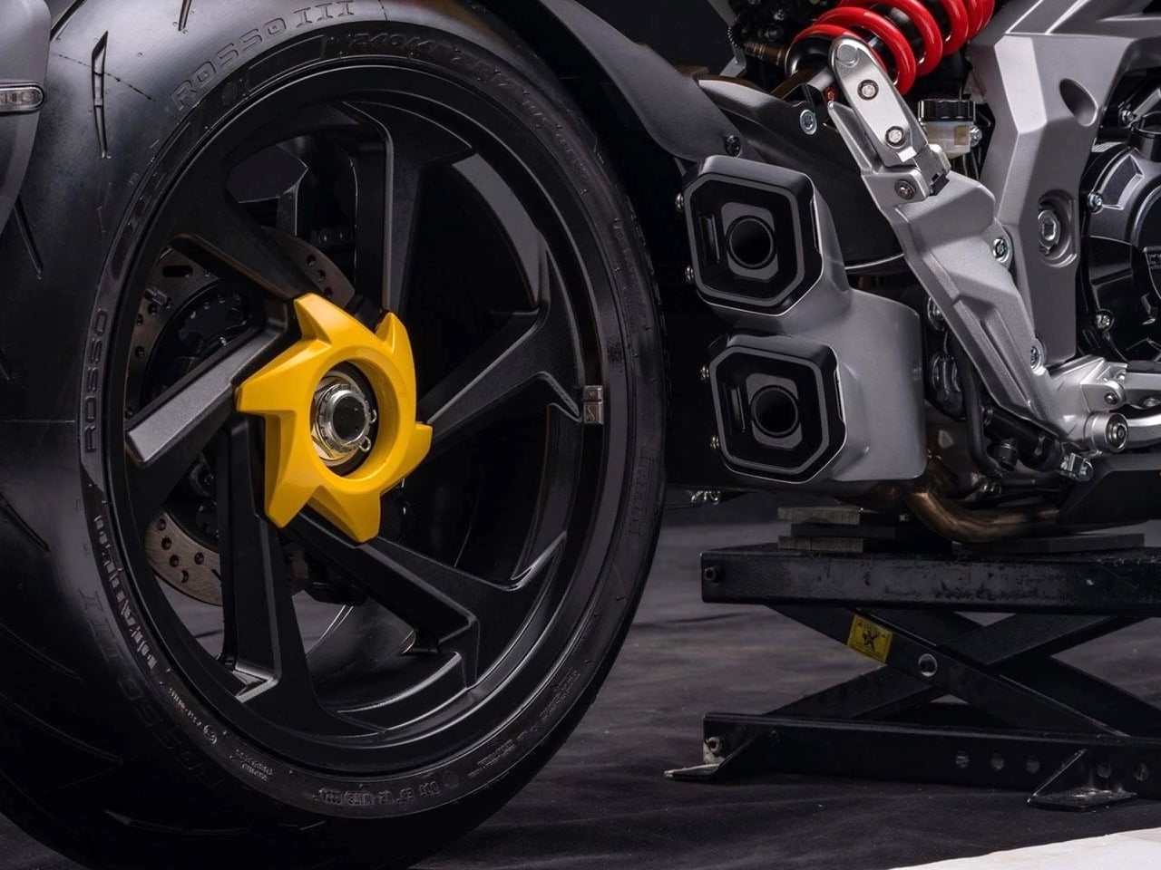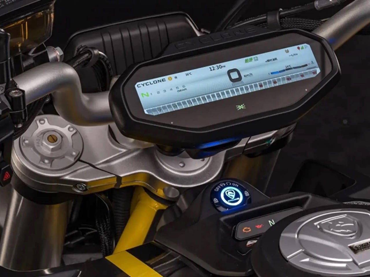 Look closer and the parts bin tells its own little international story. Brakes are from J.Juan in Spain, a known quantity with decent performance credentials. The engine lineage traces back to Noale via the Shiver, with Cyclone tweaking bore and compression to squeeze out that 105 hp figure. Electronics live on a 6 inch TFT display, backed by full LED lighting and modern switchgear that would not look out of place on a European naked. The frame and swingarm package are clearly engineered to visually showcase that enormous 240 section rear tire, which is the whole point of a bike like this. Subtlety is for commuters. This thing exists to make parking lots feel like a catwalk.
