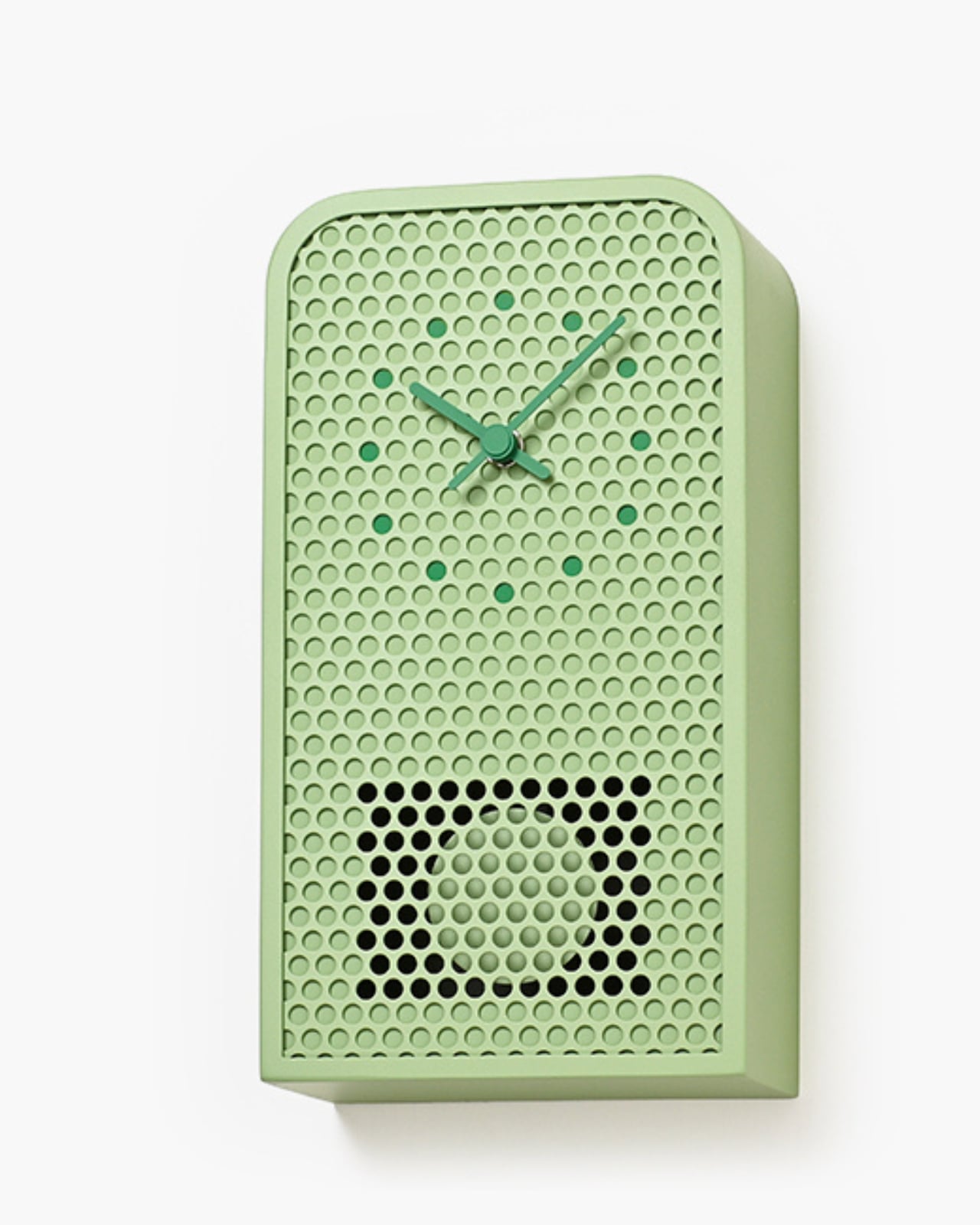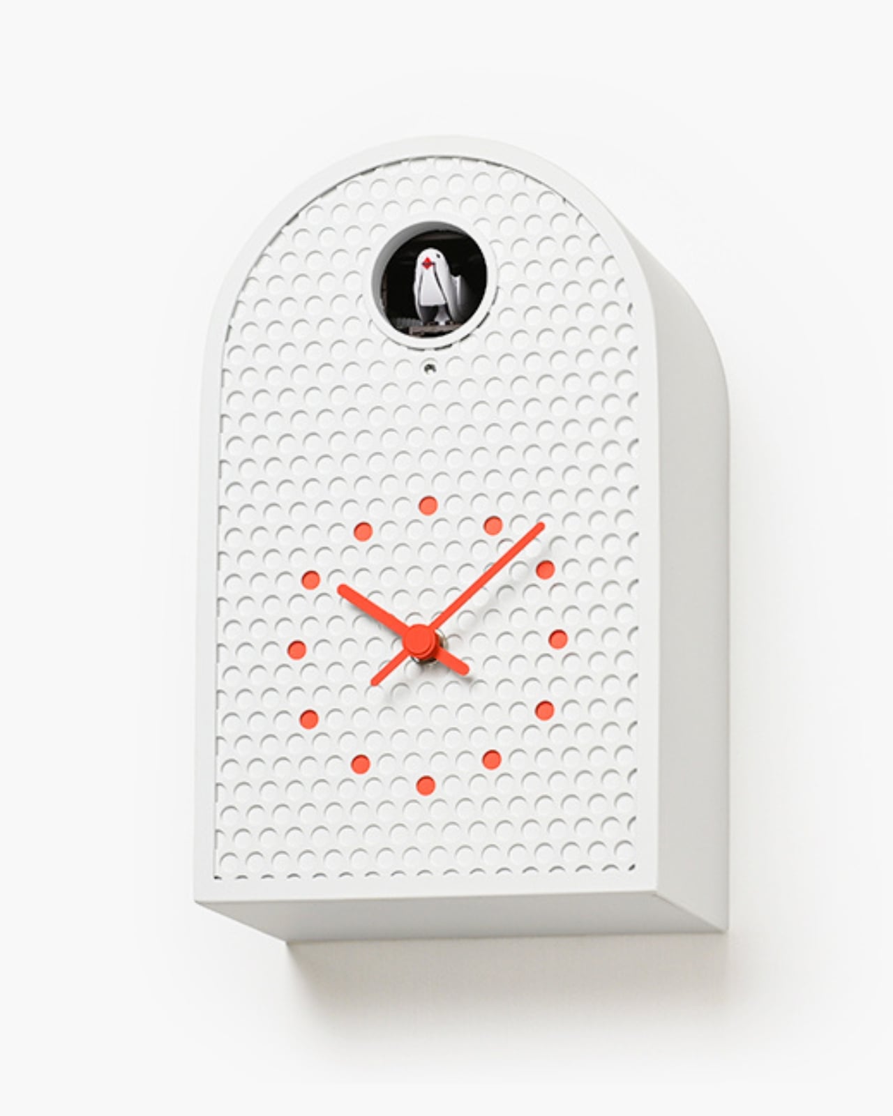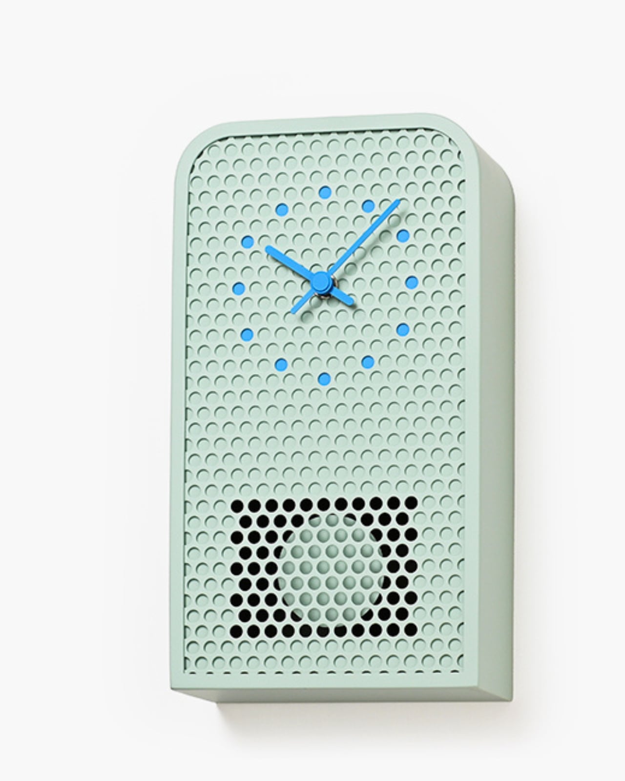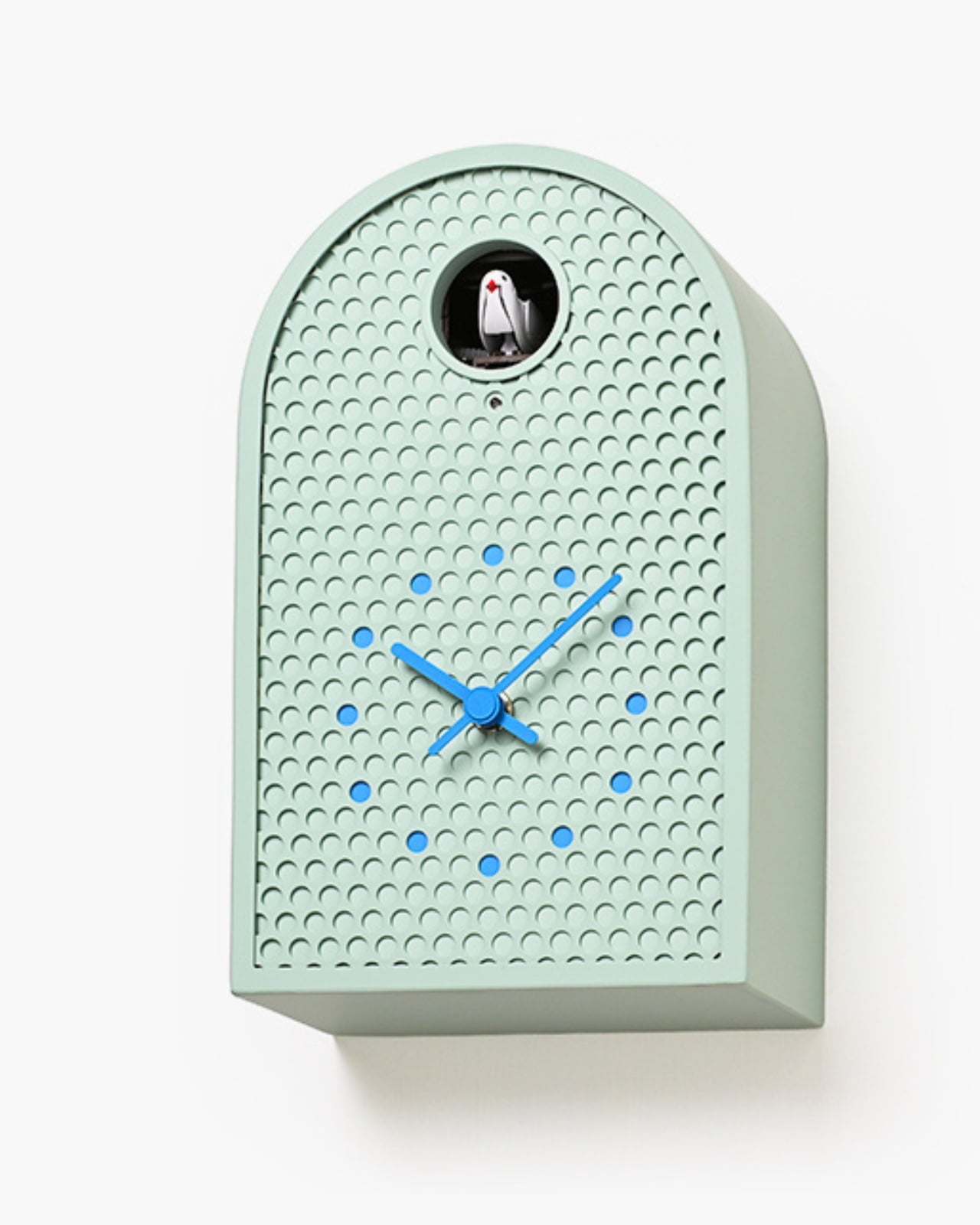 The COO Cuckoo Clock meanwhile is a metal clock that has a large circular opening where you’ll see the cuckoo appear to indicate what hour it is. This mechanical bird spreads and flaps its wings and sings a melodic version of the classic cuckoo sound. The shape of the clock is actually inspired by the arched windows from ancient times. The front is made of perforated metal and like the MOOV, the indicators are also colored to match the holes. The mixture of industrial materials and antique elements gives it a certain warmth that makes it feel both contemporary and nostalgic at the same time.