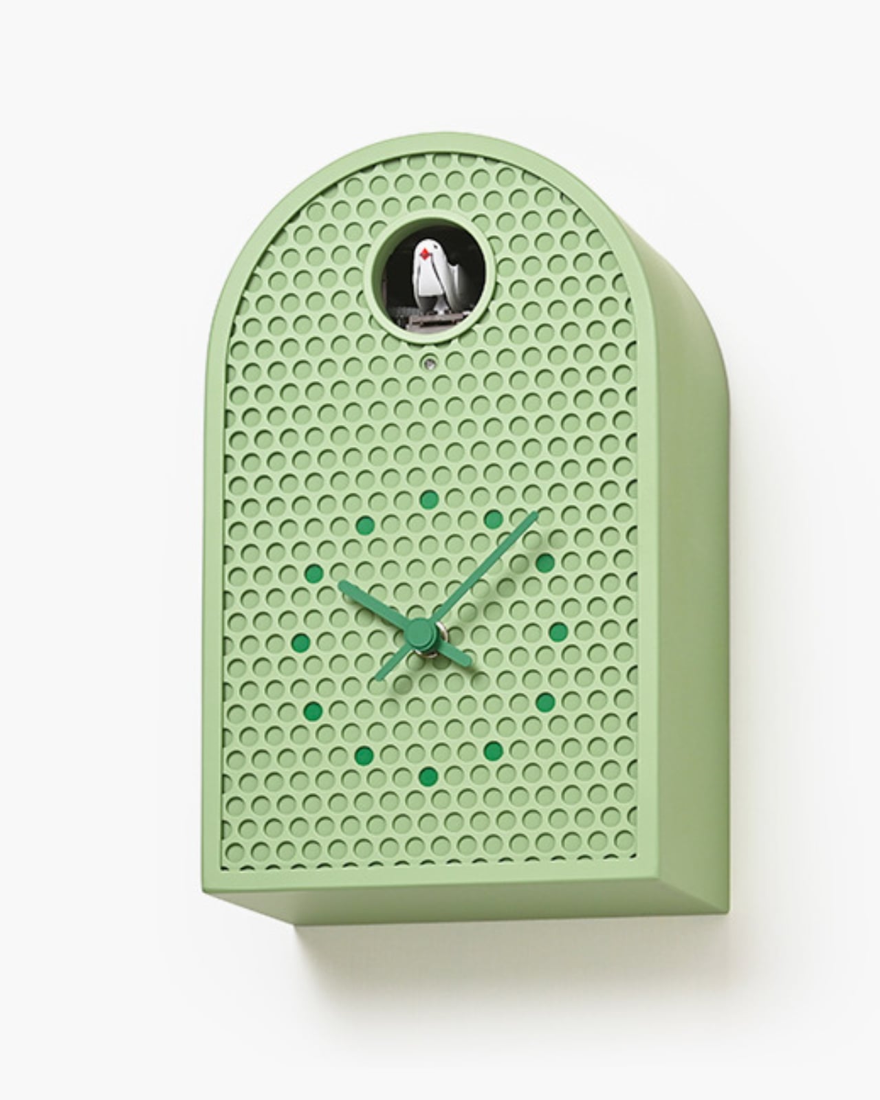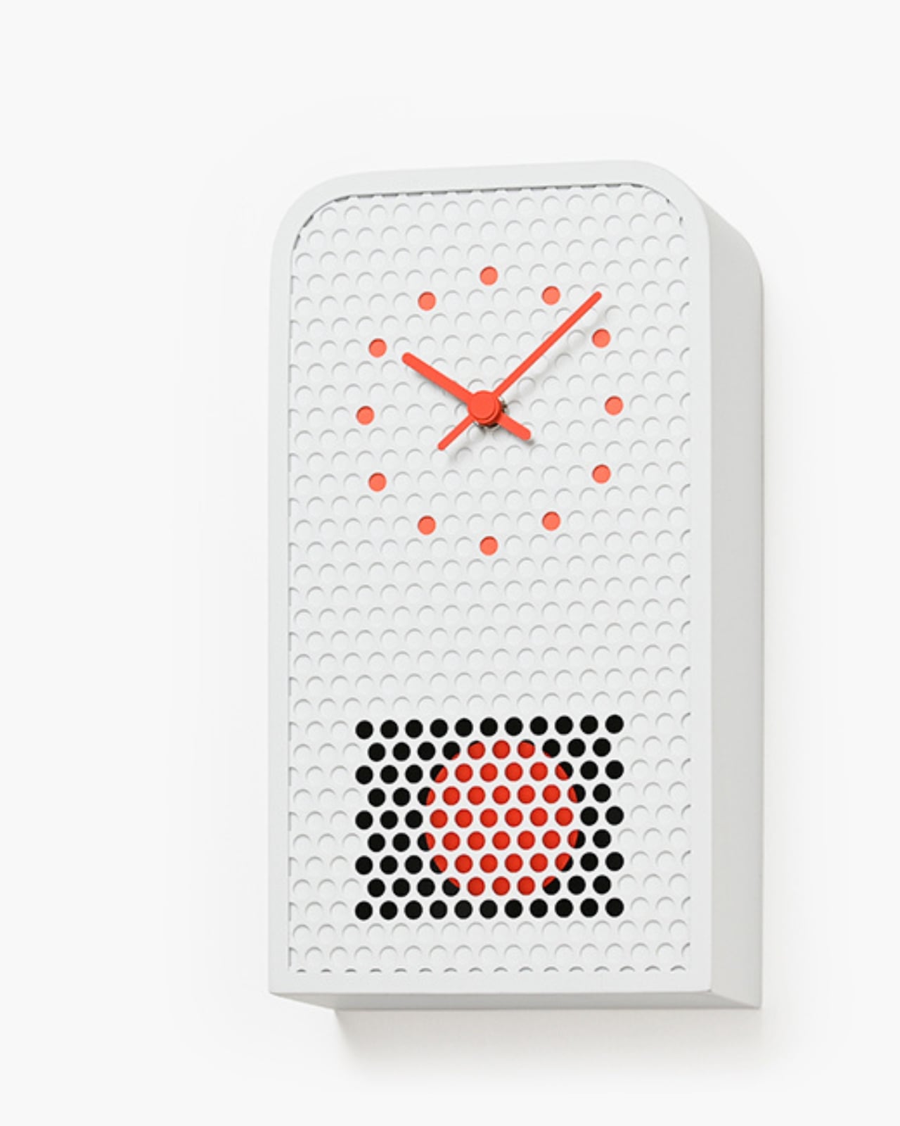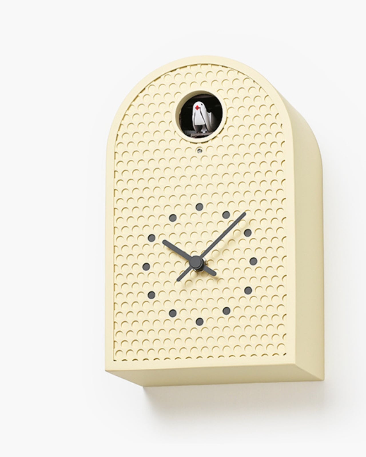 The COO Cuckoo Clock meanwhile is a metal clock that has a large circular opening where you’ll see the cuckoo appear to indicate what hour it is. This mechanical bird spreads and flaps its wings and sings a melodic version of the classic cuckoo sound. The shape of the clock is actually inspired by the arched windows from ancient times. The front is made of perforated metal and like the MOOV, the indicators are also colored to match the holes. The mixture of industrial materials and antique elements gives it a certain warmth that makes it feel both contemporary and nostalgic at the same time.