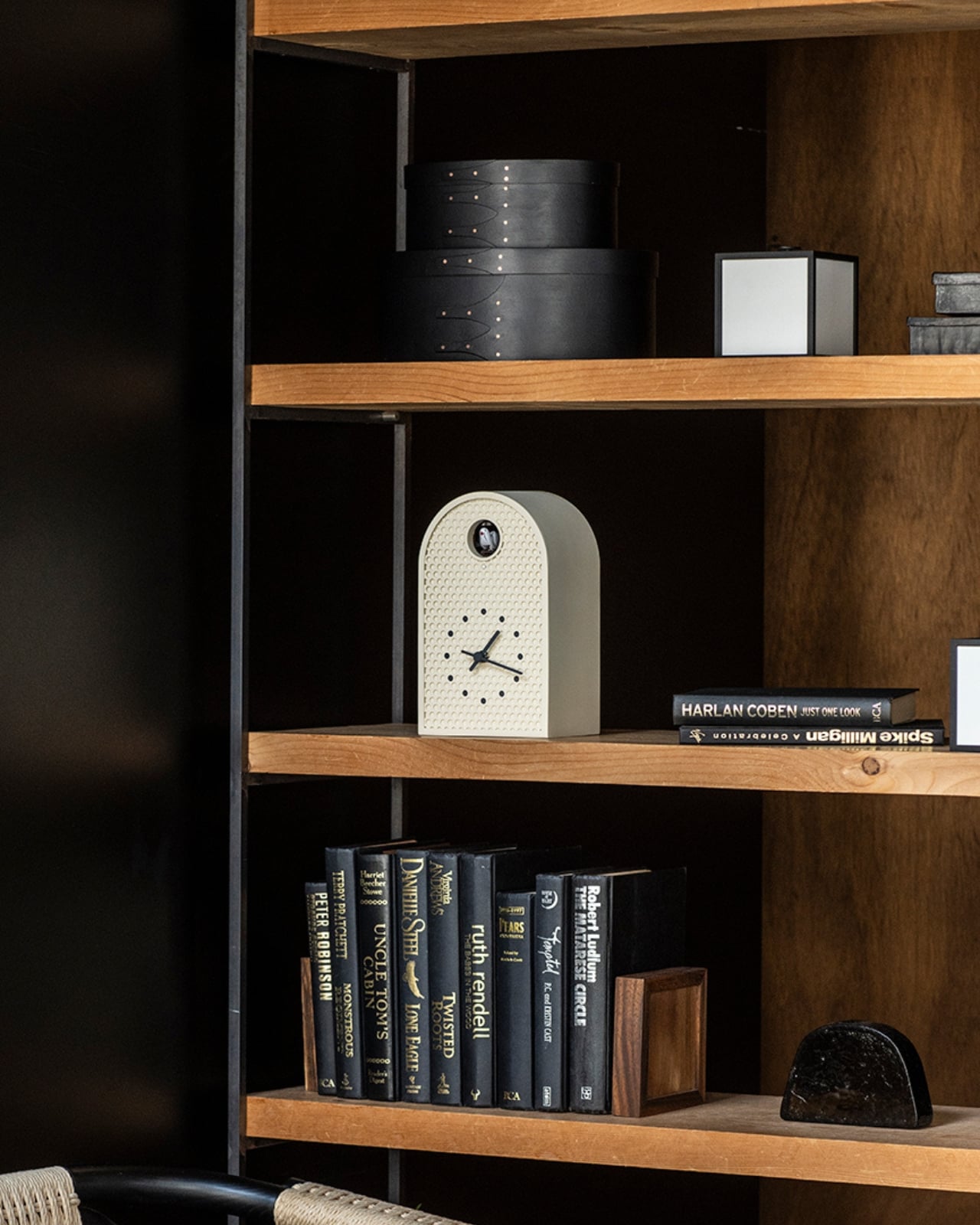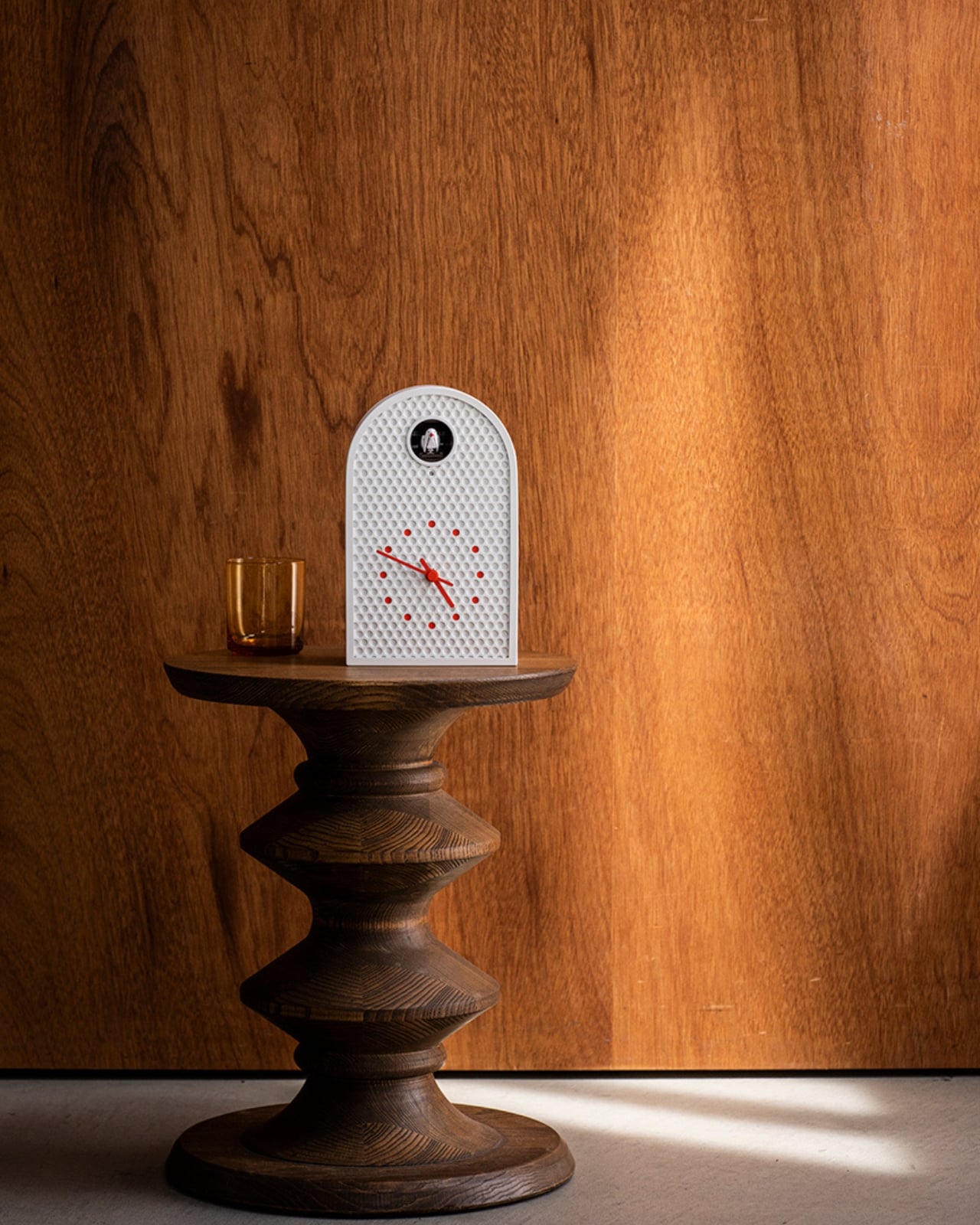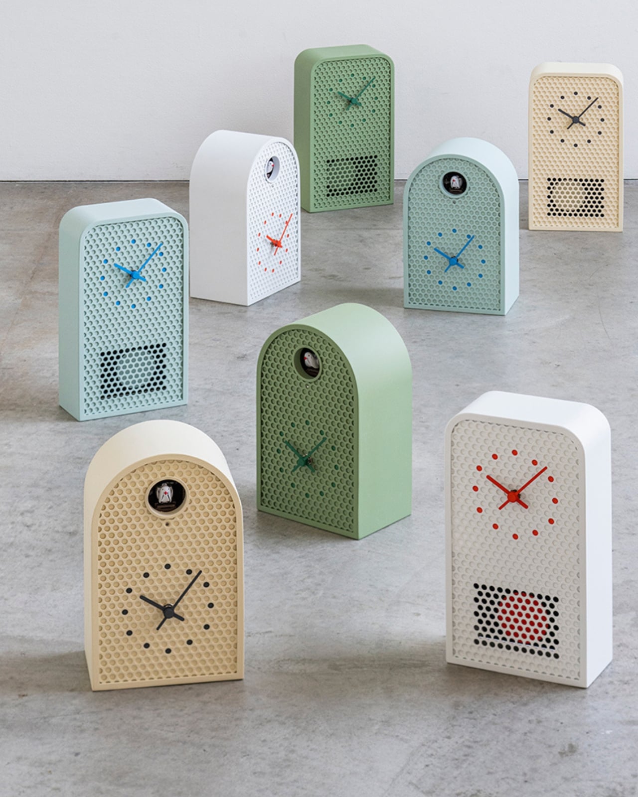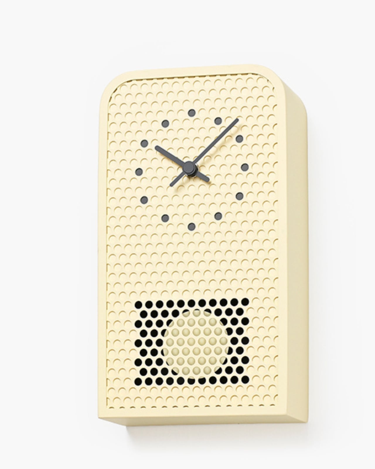 The COO Cuckoo Clock meanwhile is a metal clock that has a large circular opening where you’ll see the cuckoo appear to indicate what hour it is. This mechanical bird spreads and flaps its wings and sings a melodic version of the classic cuckoo sound. The shape of the clock is actually inspired by the arched windows from ancient times. The front is made of perforated metal and like the MOOV, the indicators are also colored to match the holes. The mixture of industrial materials and antique elements gives it a certain warmth that makes it feel both contemporary and nostalgic at the same time.