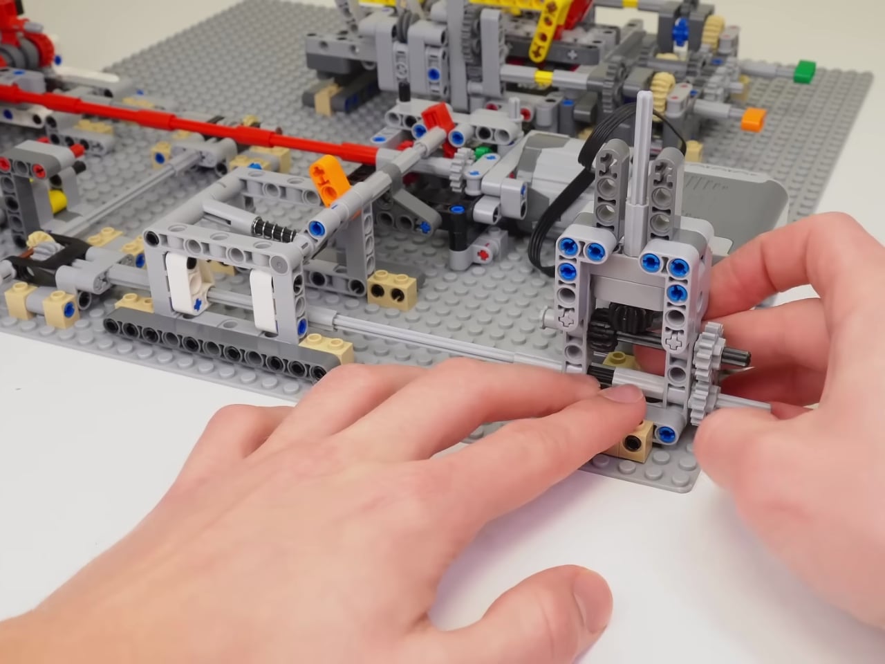 Here’s the kicker: the entire machine runs on just a single motor. No fancy Mindstorms robotics kits, no Power Functions overload, just one motor and an absolutely ingenious system of gearboxes doing all the heavy lifting. If you’ve ever tried building anything motorized with LEGO, you know how easy it is to throw motors at a problem until it works. But Brick Builds went the opposite direction, creating something that’s mechanically efficient and genuinely impressive to watch in action.
