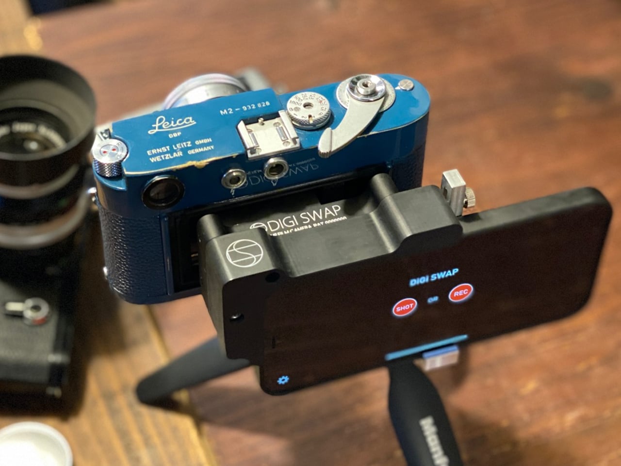 DIGI SWAP consists of an adapter and a companion app that work together to recreate the film shooting process. The adapter mounts your iPhone to the back of the camera, projecting the lens image directly into the phone’s sensor, while the app automatically captures each shot when you press the physical shutter. With features like a wind-up lever simulation and a “Film Empty” screen after 36 frames, it preserves the nostalgia of analog photography while breathing new life into classic equipment.