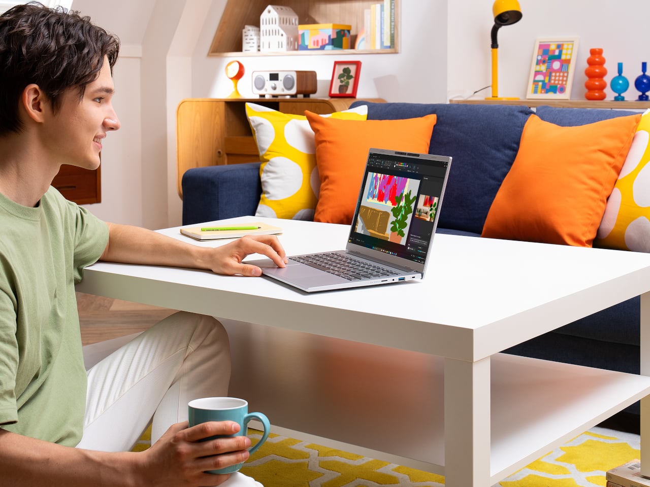 Swift Go 16 AI is the laptop that spends its time in cafés and lecture halls. It runs up to an AMD Ryzen AI 9 465 processor with Radeon 880M graphics, up to 32 GB of LPDDR5X memory, and up to 1 TB of PCIe Gen 4 SSD storage. That headroom handles a dozen tabs, a video call, and a Copilot window without the fans screaming, and it all lives in a laser-etched aluminum chassis that opens a full 180 degrees.