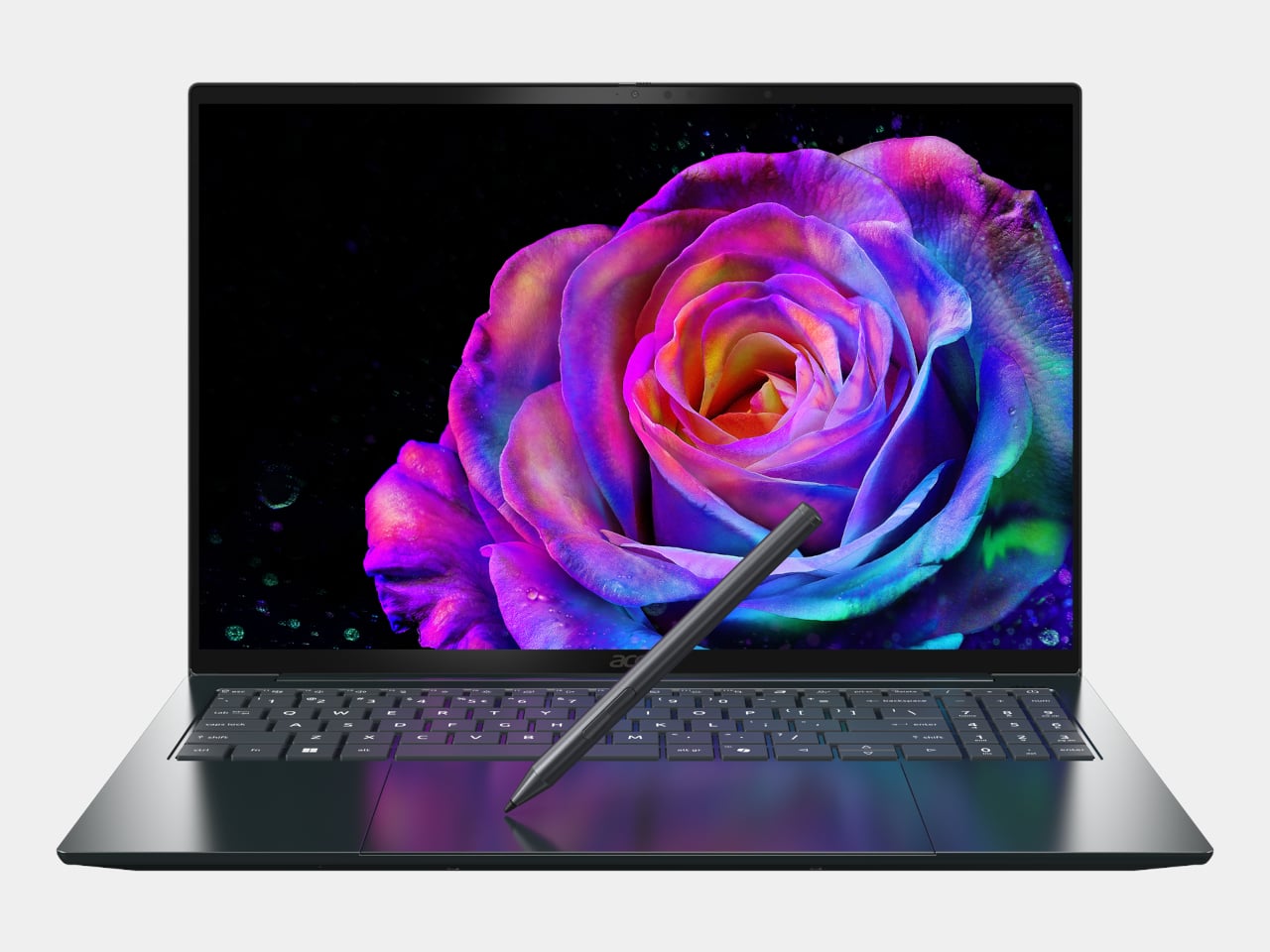 The Swift 16 AI is Acer’s CES flagship for people who live in creative apps. It runs up to an Intel Core Ultra X9 388H with Intel Arc B390 graphics, up to 32 GB of LPDDR5X, and up to 2 TB of SSD storage. The 16‑inch 3K OLED WQXGA+ display, with 120 Hz refresh, 100% DCI‑P3, and VESA DisplayHDR True Black 500, gives animators, video editors, and illustrators a bright, color‑accurate canvas that still fits in a 14.9 mm‑thin aluminum chassis.