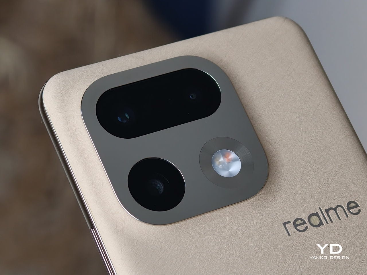 The Urban Wild Design is articulated through a deliberate contrast of the mirror-polished camera deco set against a natural texture back panel. The back is built around what realme calls a Metal Mirror Camera Deco, a mirror finish metal plate that frames the lenses like a piece of jewellery on top of a matte, softly grained surface. The back panel uses a bio-based organic silicone derived from plant-based straw, processed with an eco-friendly method that the brand positions as an industry-first eco material. The result is a surface that feels soft, finely textured, and grippy, with a visual warmth and calmness you do not usually get from glass or glossy plastic.