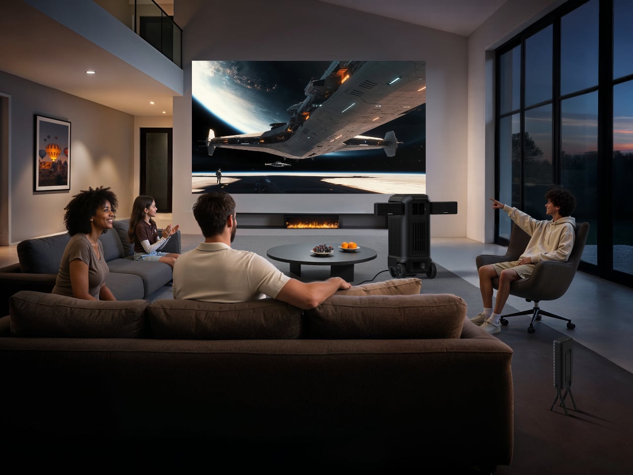 Nebula X1 Pro is the extreme end of the same idea, a mobile theater station on wheels. It uses a 3,500 ANSI‑lumen 4K triple‑laser engine with 110% Rec.2020 color, 5,000:1 native contrast, and 56,000:1 dynamic contrast, bright enough to throw a 200‑inch image outdoors at night. The integrated wireless 7.1.4 sound system, certified for Dolby Atmos, means the audio is as much a part of the experience as the picture.