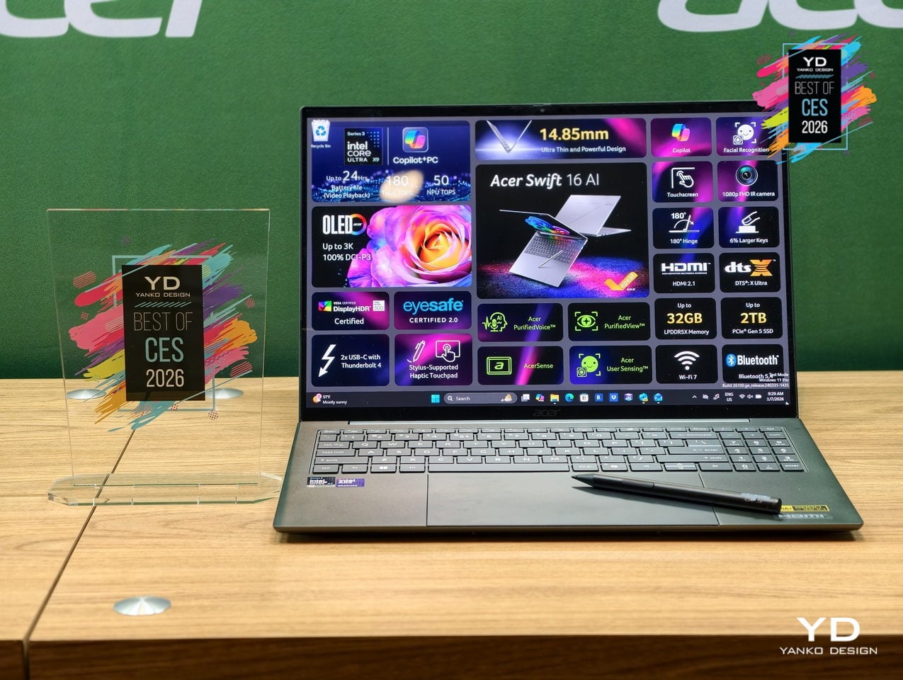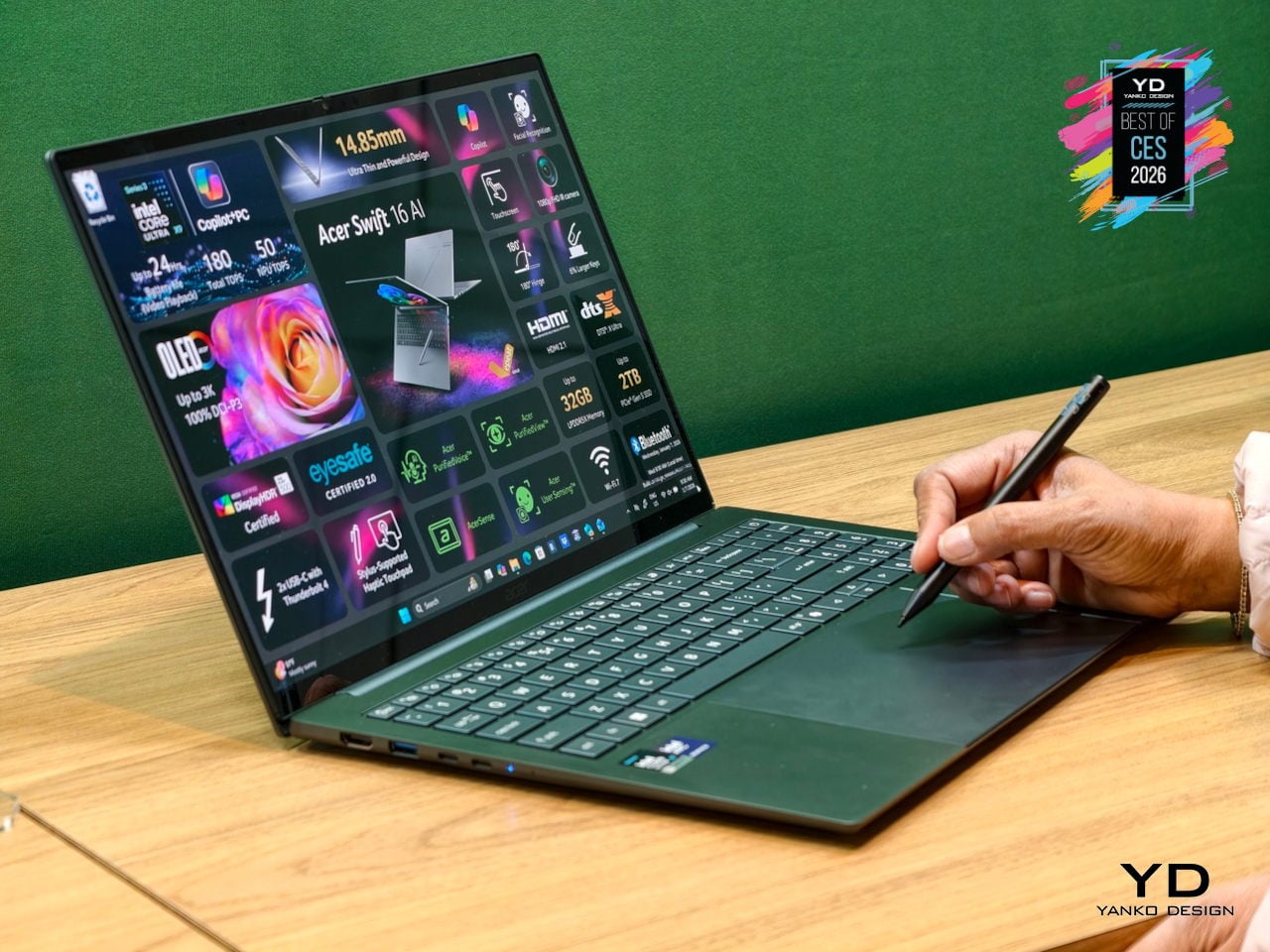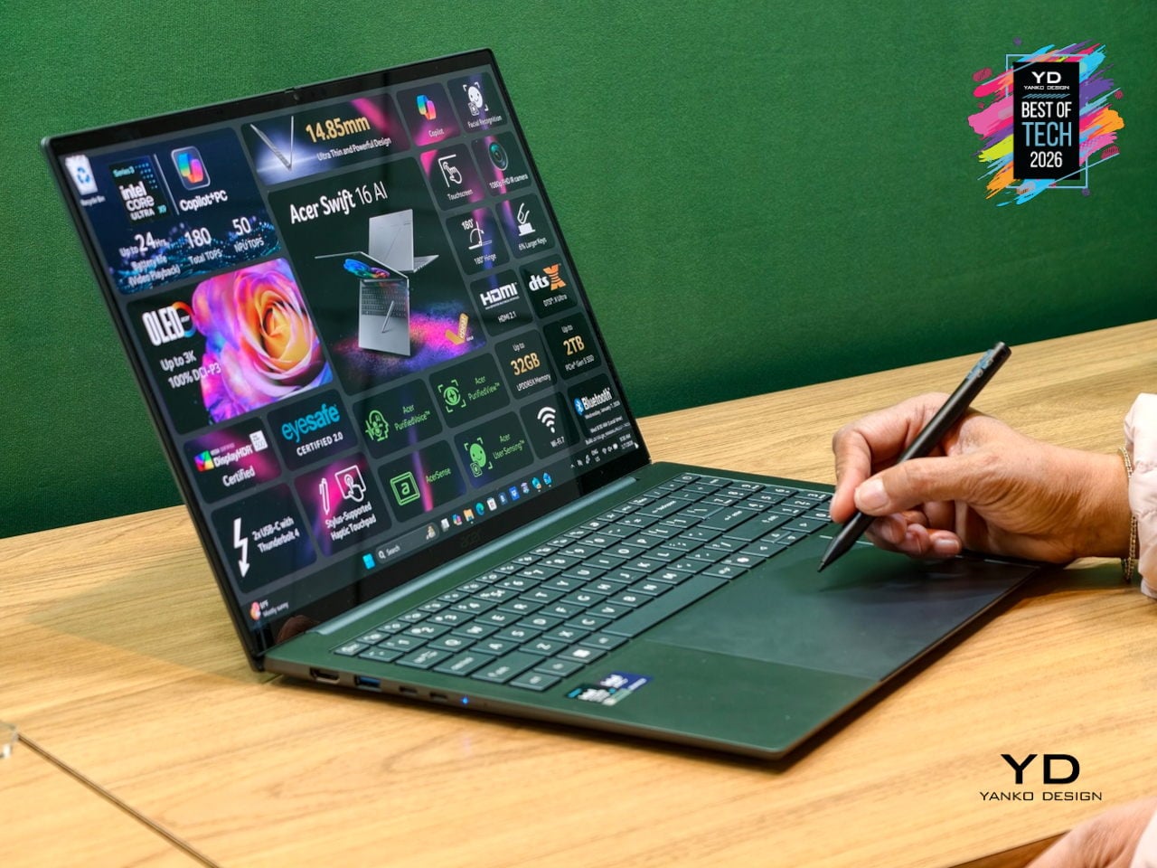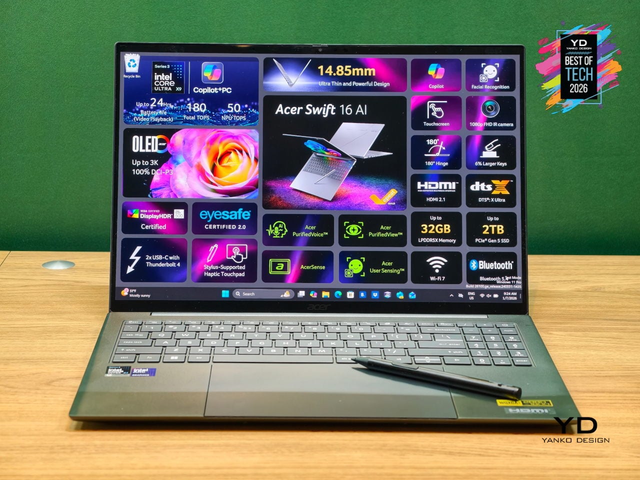 As a Copilot+ PC, the Swift 16 AI unlocks Click to Do, Copilot Voice, and Copilot Vision, while Acer adds PurifiedVoice, PurifiedView, User Sensing, and the Intelligence Space hub for calls, privacy, and productivity. Dual Thunderbolt 4 ports, HDMI 2.1, MicroSD, Wi-Fi 7, DTS:X speakers, and an FHD IR camera complete a machine that treats AI, I/O, and everyday ergonomics as equally important, making it one of the most complete thin-and-light creative laptops arriving this year.