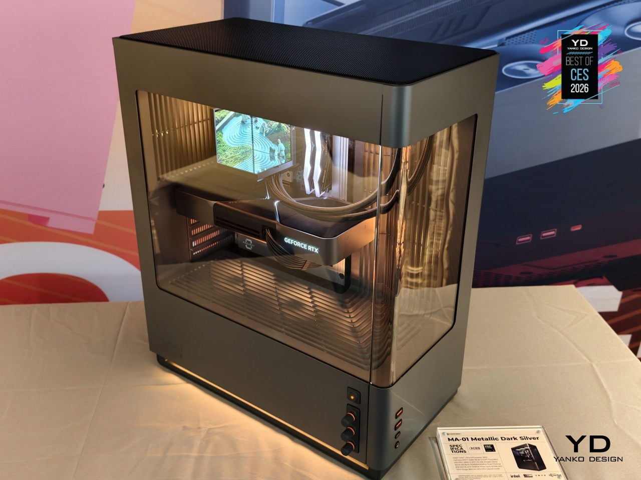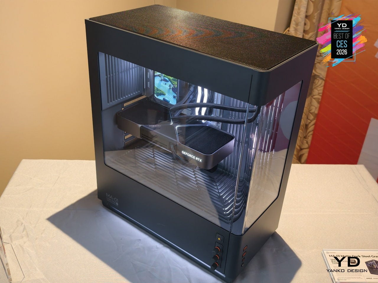 The CyberPowerPC MA-01 suggests that gaming hardware can behave like a mature object in the room. It still moves air and lights up, but through woven mesh, sculpted vents, and analog controls that feel considered. For people who want a powerful tower that can live on a desk without shouting, that shift in attitude turns a spectacle into something you choose to keep visible.