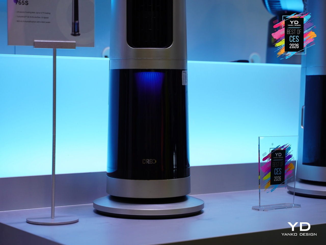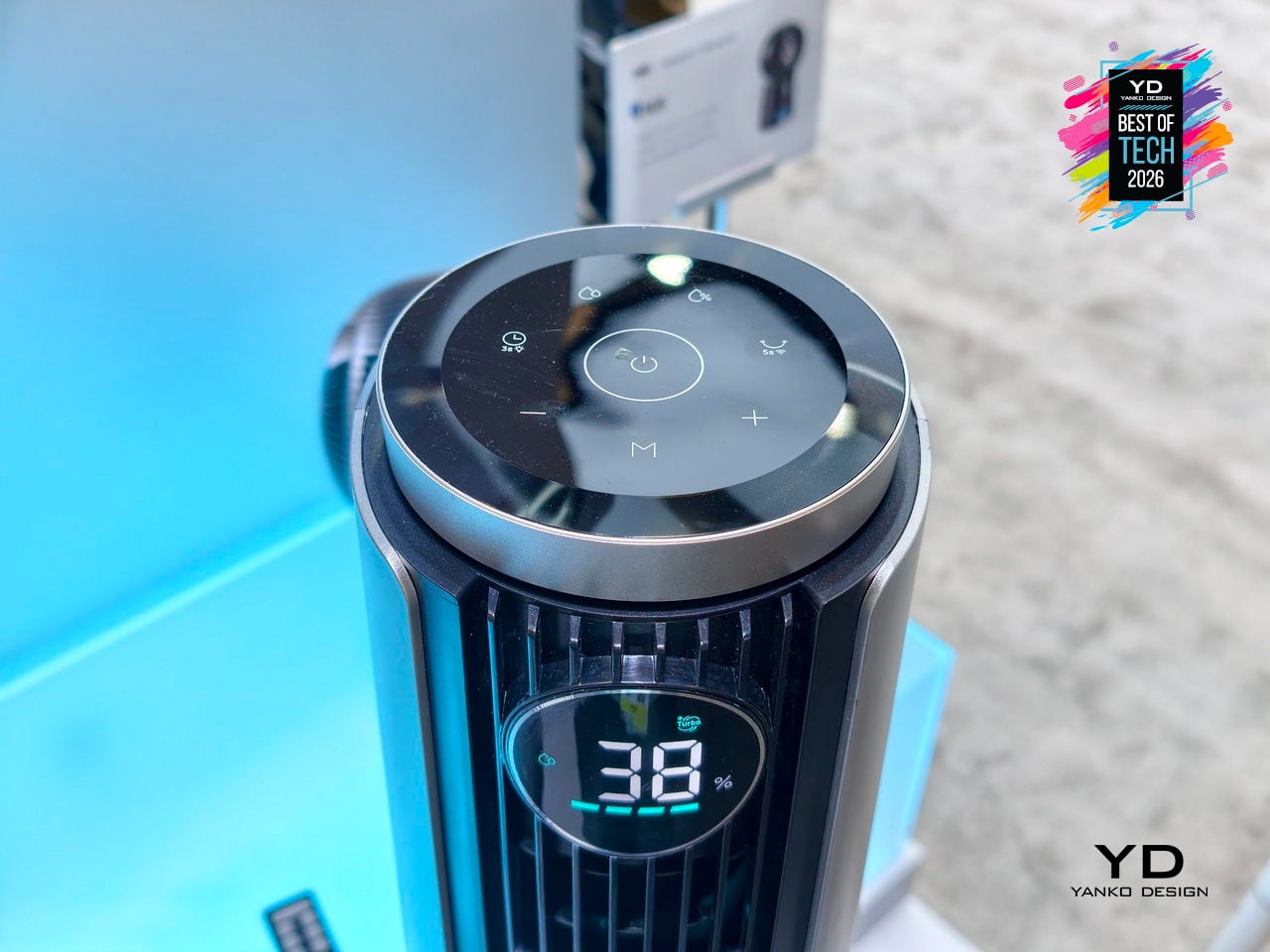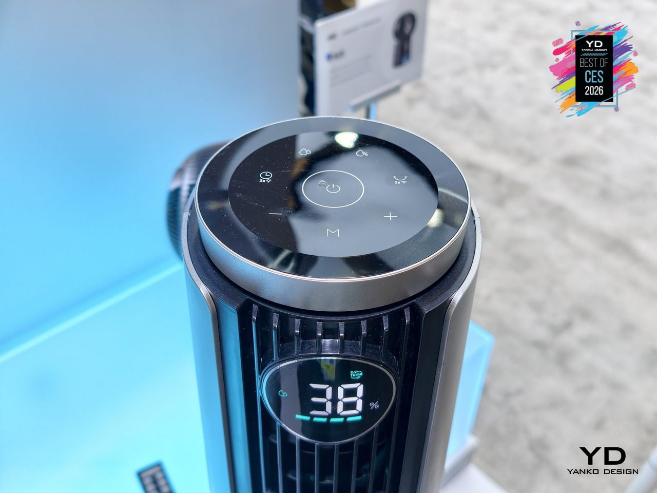 The TurboCool 765S fits into smart homes with 12 fan speeds, 4 cooling modes, and 4 humidity levels accessible via app, voice, or remote, plus child-lock safety and ecosystem compatibility. The slim, silver-and-black tower with a transparent base and blue core looks more like a high-end audio column than a utility fan. At CES 2026, it stands out as climate tech that respects both performance and living-room aesthetics, making all-day indoor cooling feel less like a compromise.