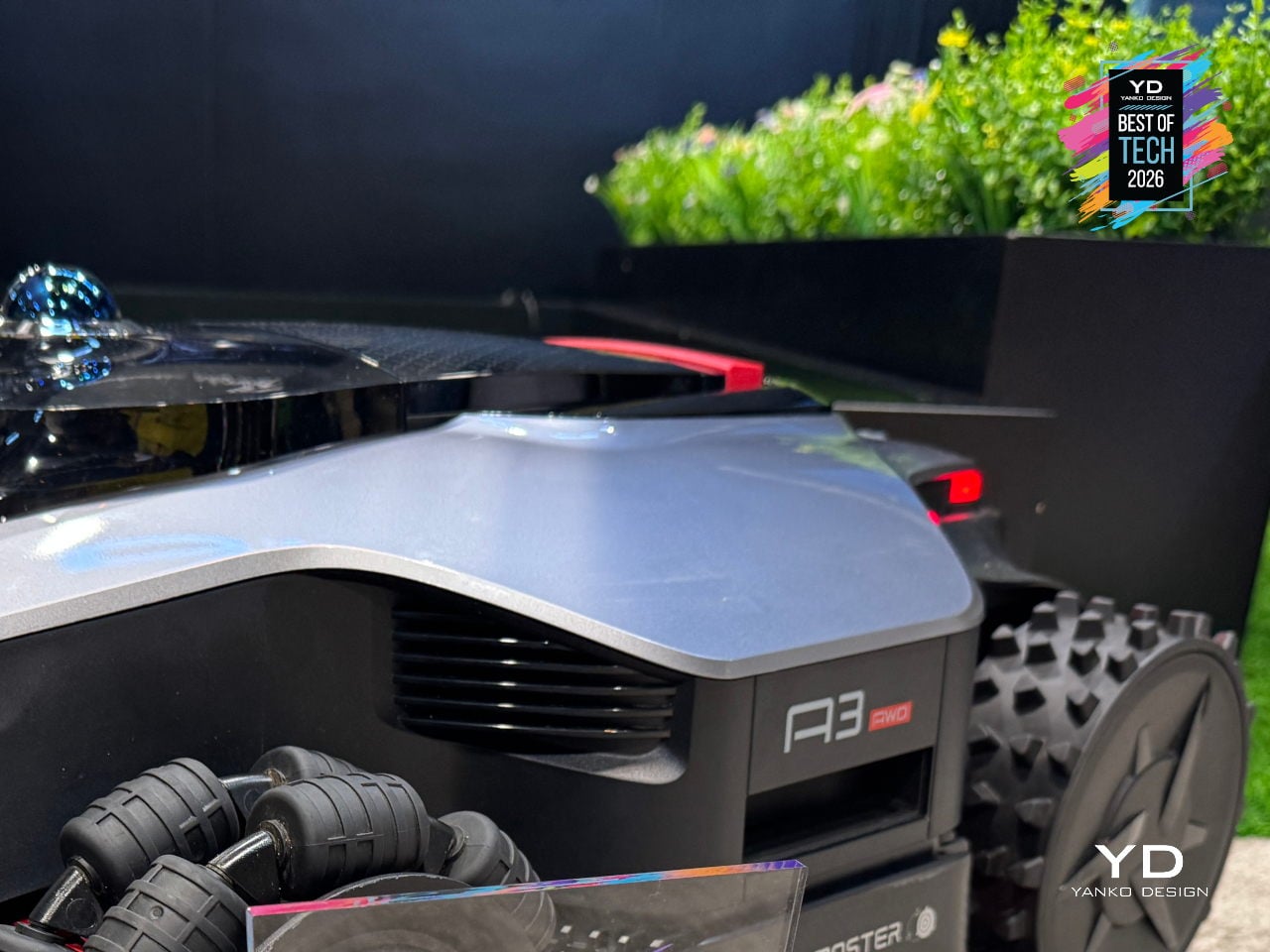 The 4WD hub motors and all-wheel-drive architecture let it handle up to 80% slopes and climb 4.5cm obstacles, which means it can deal with hills, roots, and transitions that would stop a typical mower. The low, wide stance and independent wheel control keep it stable on inclines and let it move confidently across different surfaces without getting stuck or leaving awkward uncut patches halfway up a slope.