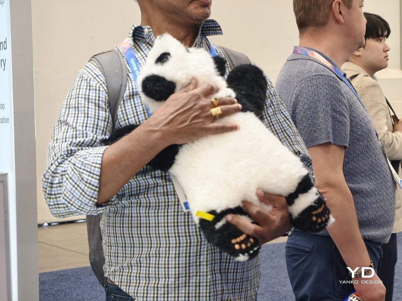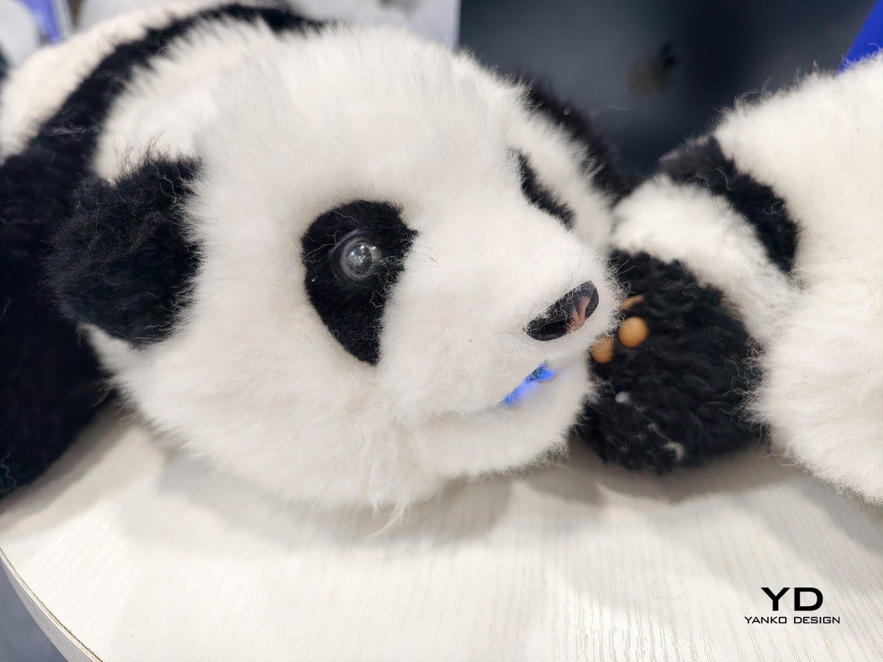 An’An is a biomimetic panda cub companion built around the simple idea that people relax more easily around animals than around machines. Its body is handcrafted from Australian wool and sheepskin for natural tactile comfort, inviting stroking, hugging, and lap-holding in a way that cold plastic or silicone never could. The form factor is intentionally soft and low-key, closer to a plush toy than a science fiction robot.