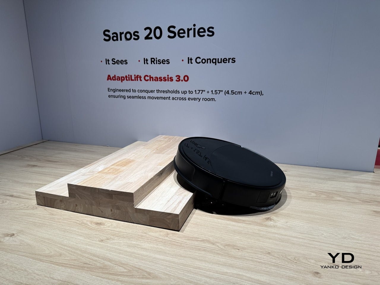 AdaptiLift Chassis 3.0 is the mechanical side of that intelligence, lifting and adjusting three wheels independently to cross double-layer thresholds up to 8.5 cm tall, climb onto carpets as thick as 3 cm, and free itself when stuck. Layouts where balcony lips, thick rugs, and split-level transitions trap lesser robots become manageable terrain. Saros 20 learns the best way to cross each threshold and remembers it, treating obstacles as solvable puzzles rather than dead ends.