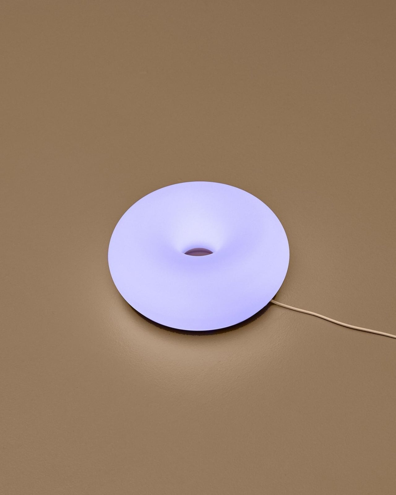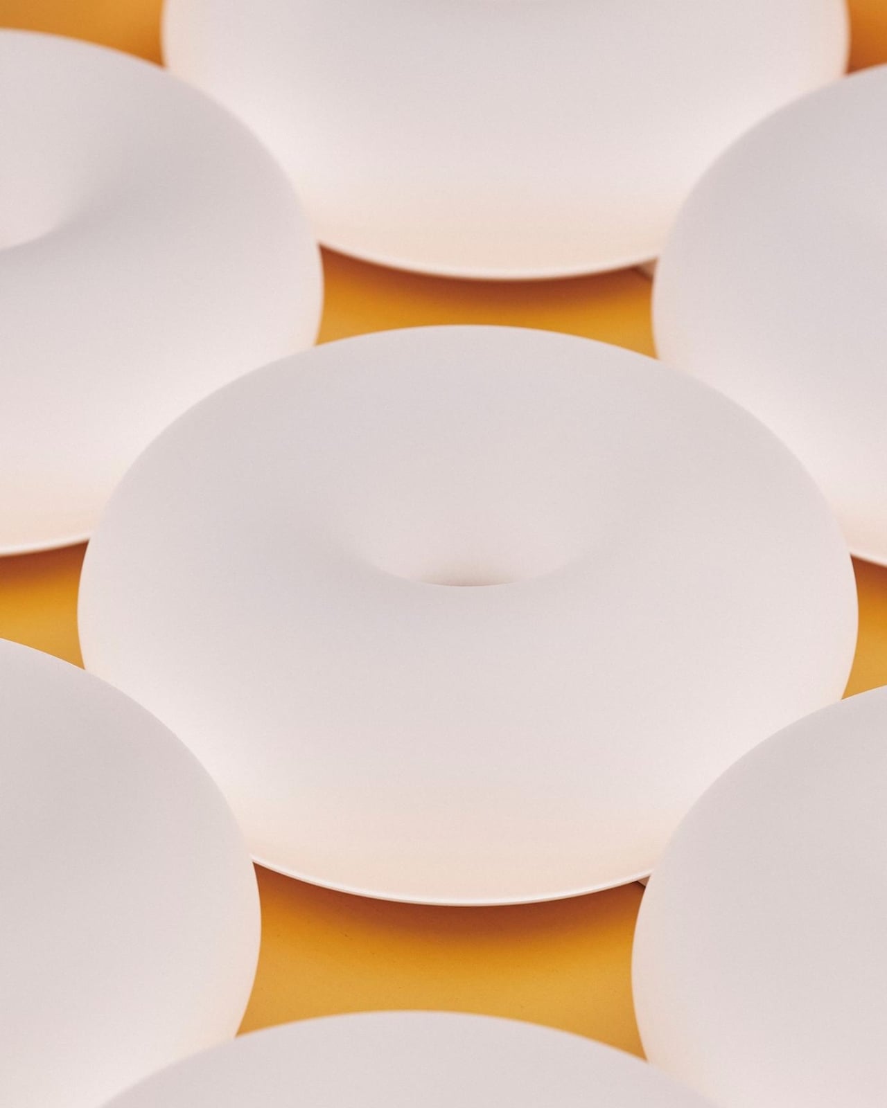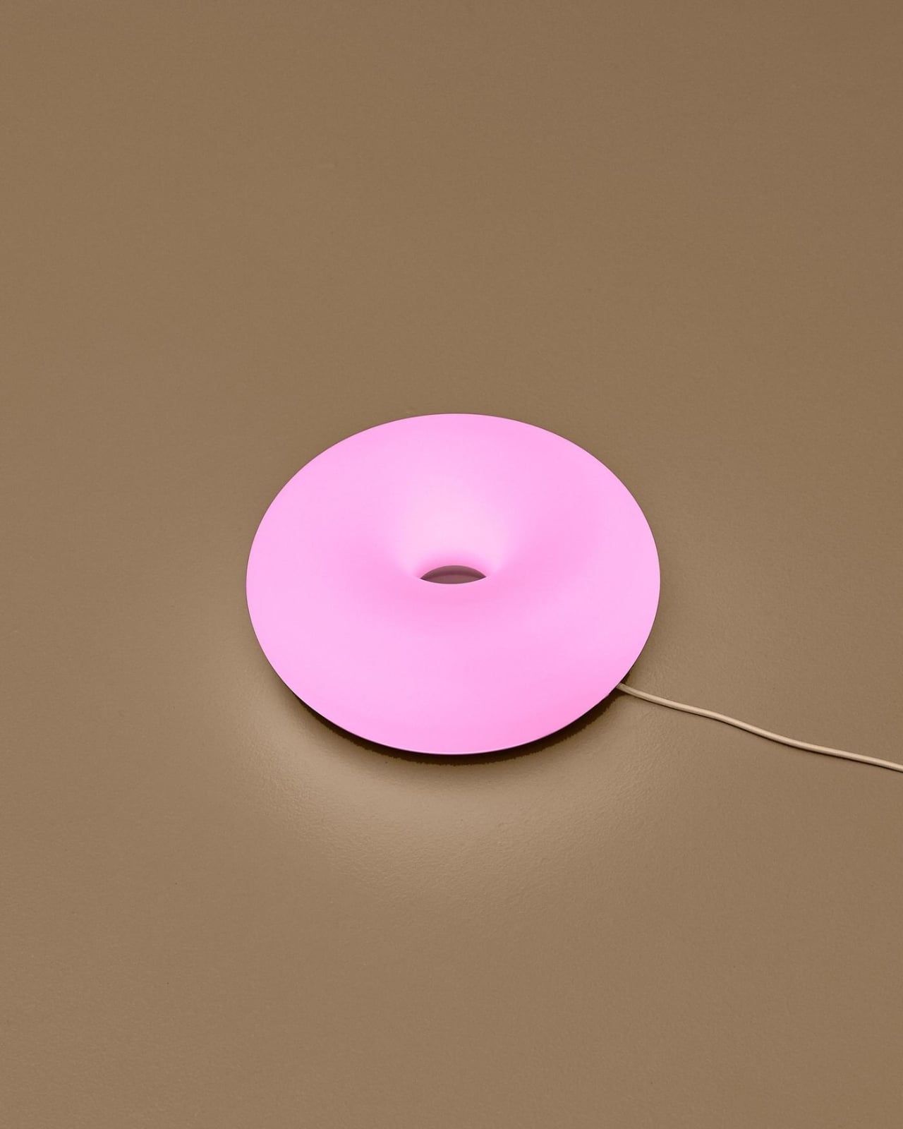 Now this lamp is seeing a 2026 upgrade with the new VARMBLIXT smart donut lamp that still keeps the popular sculptural but playful form intact but adds a smarter component. The light now radiates from the inside with its matte finish instead of the previous version where external light reflected and bounced off on its glossy surface. This shift from glossy to matte white glass fundamentally changes how you experience the lamp – instead of being a reflective object, it becomes a glowing light source that creates ambiance from within.