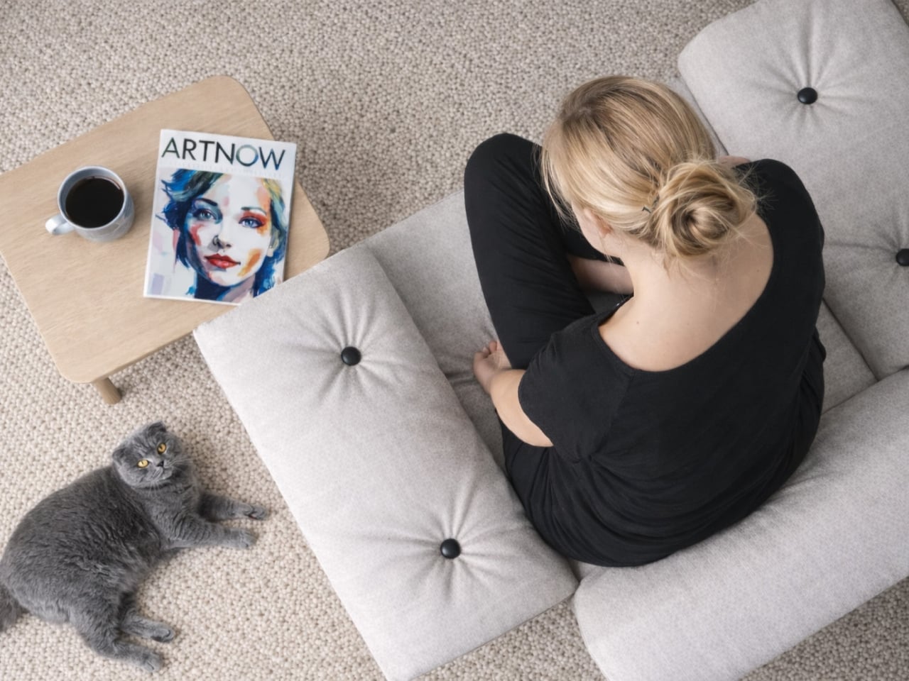 The frame itself keeps things grounded. Slim metal legs in either white or black powder coat give the chair an airy, almost floating quality. It’s a smart move. With all that cushioned drama happening above, a heavy base would make the whole thing feel clunky. Instead, the minimal structure lets those colorful layers take center stage while still providing solid support.