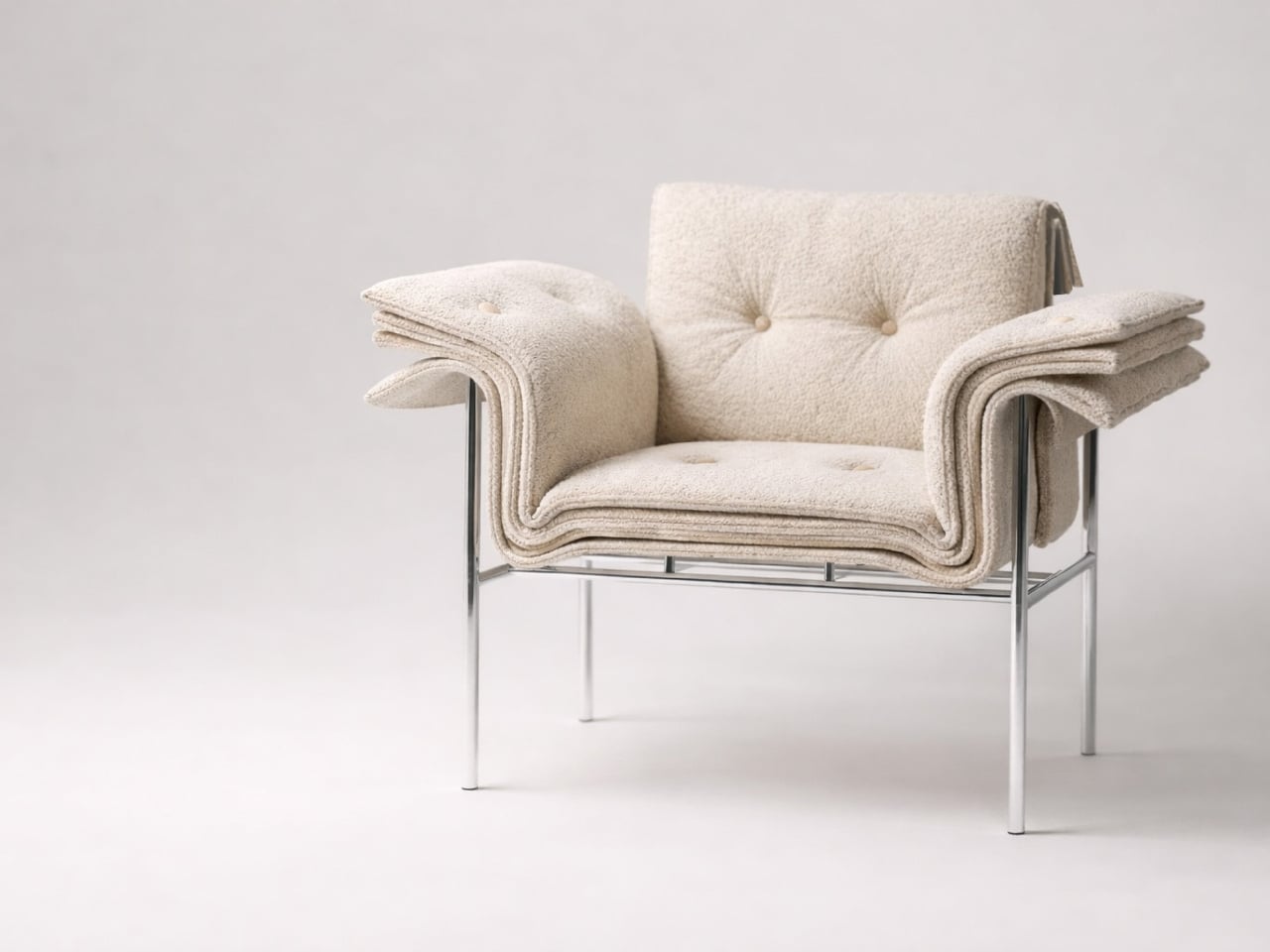 What really gets me about this design is how it celebrates the materials themselves. Usually, upholstery is hidden away, tucked and stapled underneath where no one sees the construction. Demirci flips that script entirely. Here, the layers become the main event. Every fold, every color transition, every texture is on full display. It’s like the chair is saying, “Hey, look how I’m made, and isn’t it beautiful?”