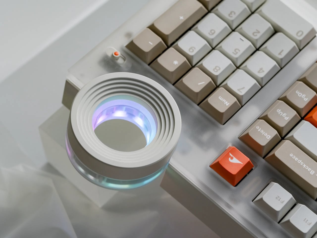 Angry Miao’s ATM 98 tries to bridge that gap with a silent-first philosophy. It keeps a full 98-key layout with a numpad and function row, wraps it in an aluminum shell that weighs around 2.6 kg, and centers a large Star Ring knob on the top right. The whole thing reads more like a desk sculpture than office equipment, built for people who type all day and want something that feels deliberate without announcing itself.