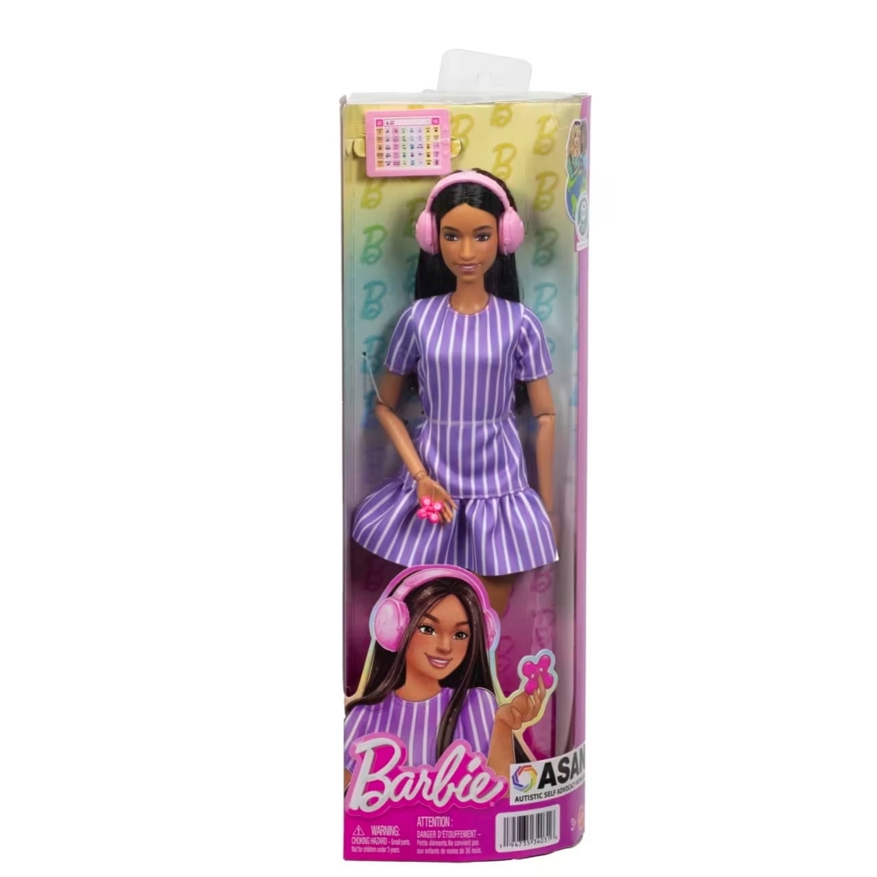 Even the clothing got the thoughtful treatment. The doll wears a loose-fitting purple pinstripe dress with short sleeves and a carefully designed skirt that reduces fabric-to-skin contact, paired with flat purple shoes. For anyone who’s experienced sensory sensitivities, this detail hits differently. It’s a recognition that comfort isn’t one-size-fits-all, and that design should accommodate different ways of experiencing the world.