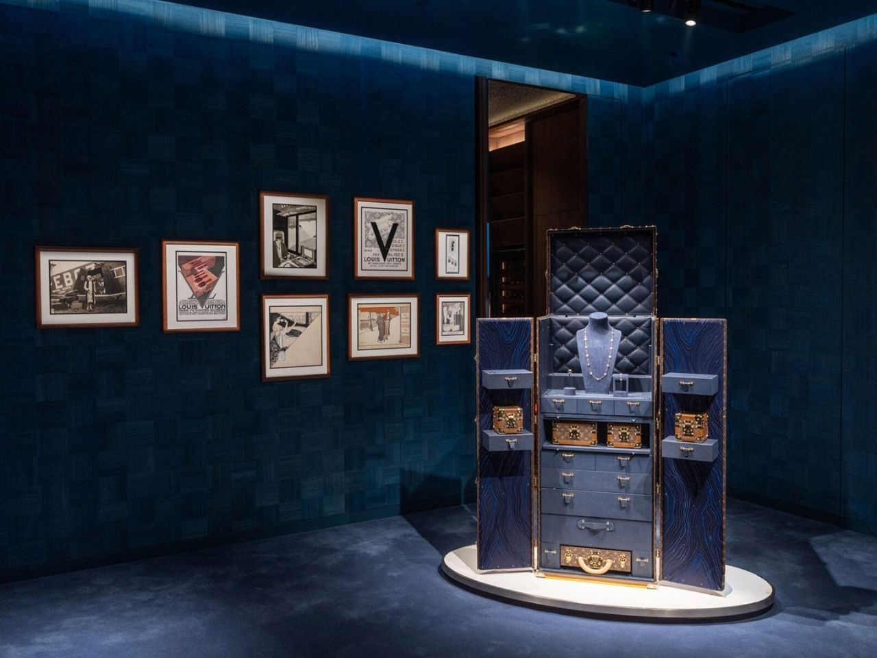 A distinct tonal shift occurs on the third floor, where the Louis Vuitton Home collection is presented. Furniture, textiles, and tableware by designers such as Patricia Urquiola and Cristian Mohaded are displayed in rooms scaled closer to domestic interiors, with softer finishes and calmer light, allowing the objects to breathe.