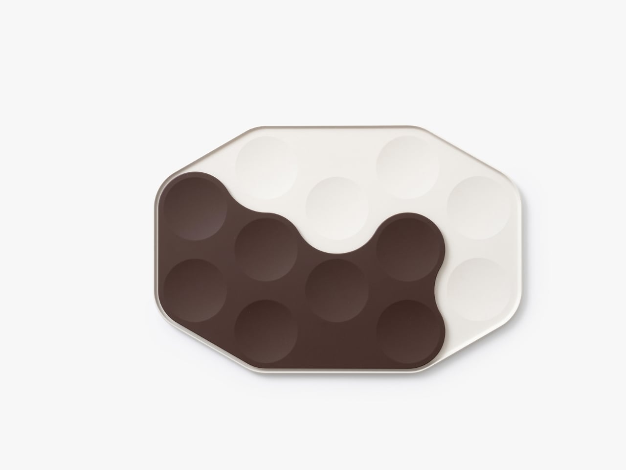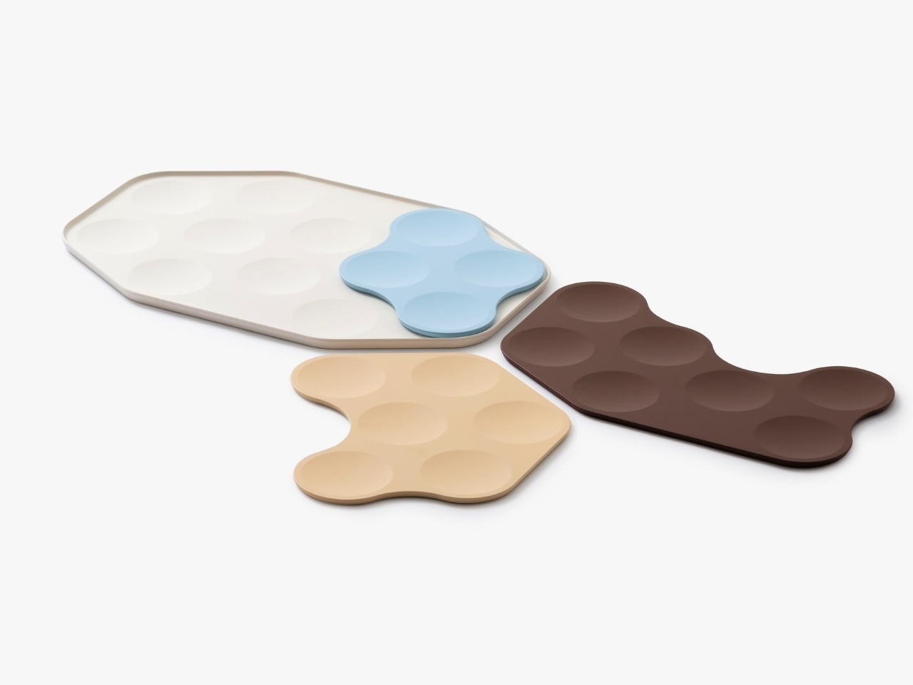 But let’s talk about the visual appeal, because this is where the design really shines. The color palette is subtle and sophisticated: soft creams, muted blues, warm beiges, and earthy browns. These aren’t the harsh primary colors or industrial grays we’re used to seeing on planes. The shapes themselves are organic and almost playful, with curved edges that interlock in unexpected ways. Laid out, they look more like modern art than airline serviceware.
