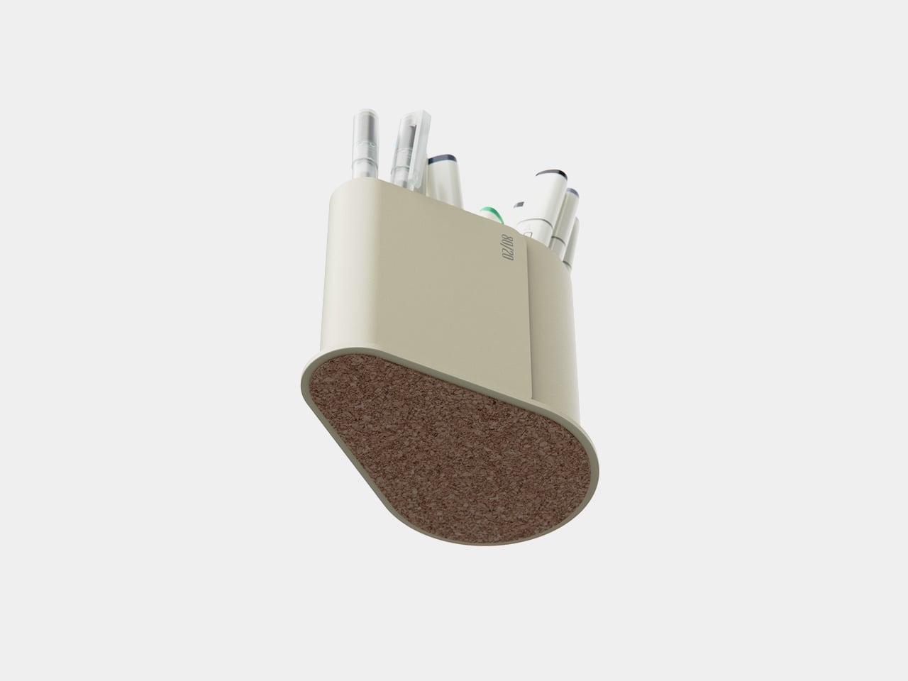The base is wide enough to stay put when you grab a handful of markers, and a cork underside protects the desk and adds grip. The height keeps pens upright and visible without making them wobble or tip when you pull one out in a hurry. It is the kind of object you can slide around a crowded workspace without worrying about tipping or scratching the surface underneath.