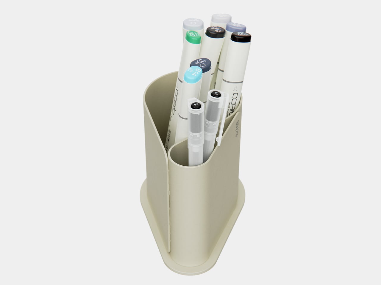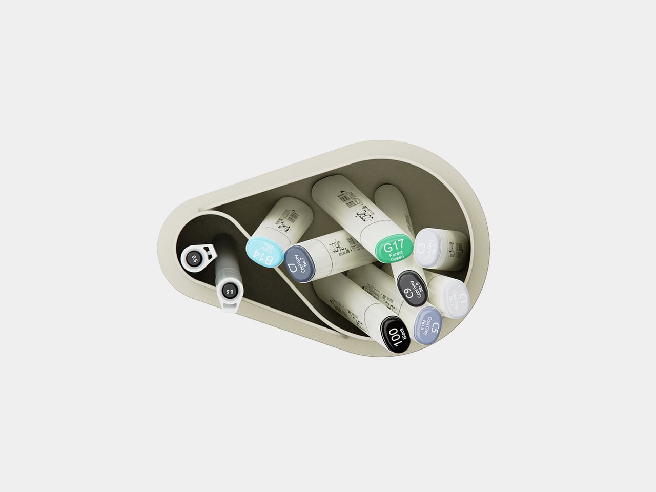 Sitting down to sketch or render, your main pen and key markers naturally drop into the larger front compartment, while backup colours, fineliners, or highlighters slide into the smaller rear section. Without thinking about it, you end up with a front row of tools you use constantly and a supporting cast that is still close but not fighting for attention every time you reach for something.