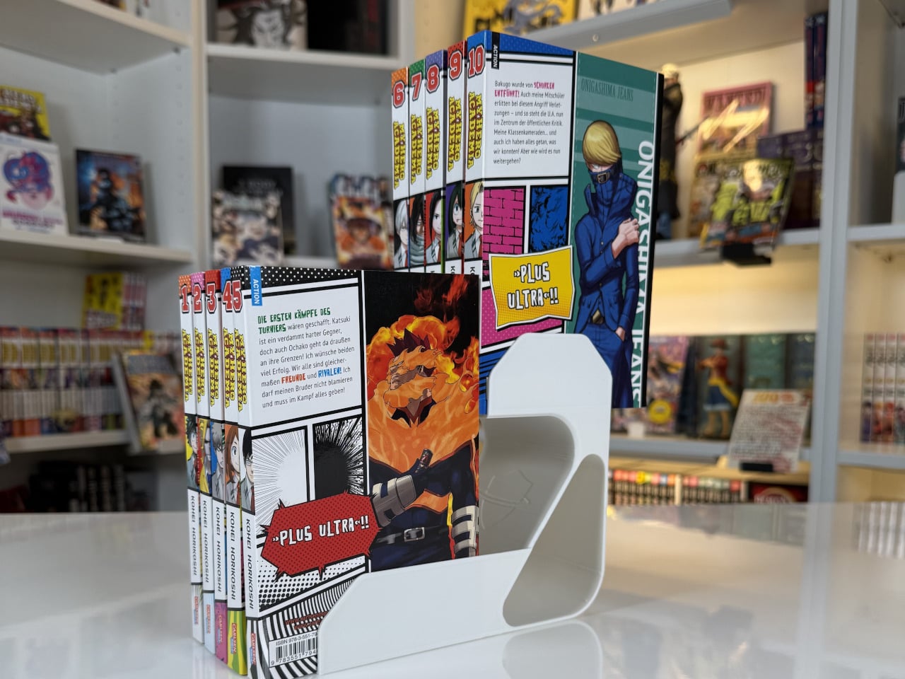 MG Raiser from MangaGuardian is a tiny shelf adapter that takes that double-row habit and makes it less painful. It is a compact L-shaped stand that lets you display two rows of manga in the same footprint, with the back row raised just enough to stay visible. Simple plastic geometry aimed squarely at overcrowded shelves, it solves a niche problem that anyone with more than 20 volumes has quietly dealt with at some point.