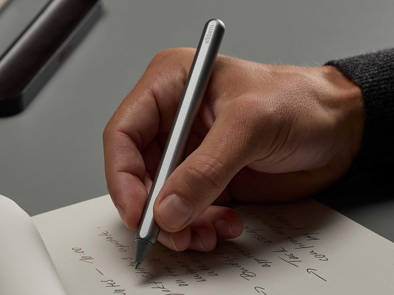 The AEON Ballpoint is defined by disciplined product design rather than visual flair. Its form is reduced to a clean metal cylinder, free of branding, excess seams, or decorative elements. The matte finishes are chosen for grip and durability, not ornament. Every curve is calibrated for the hand, making the object feel purposeful and precise from the first touch.