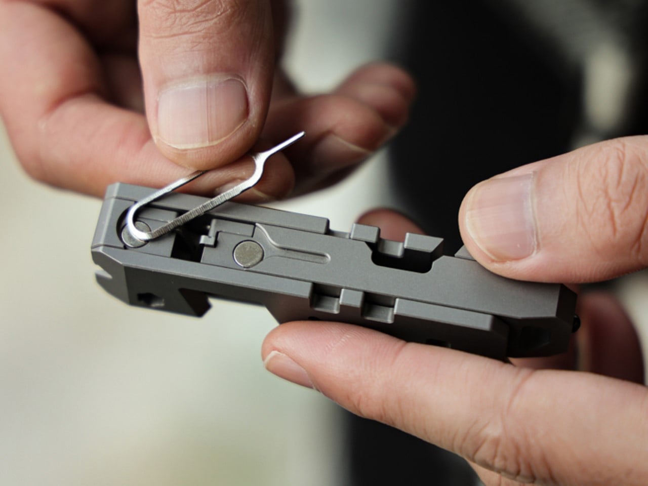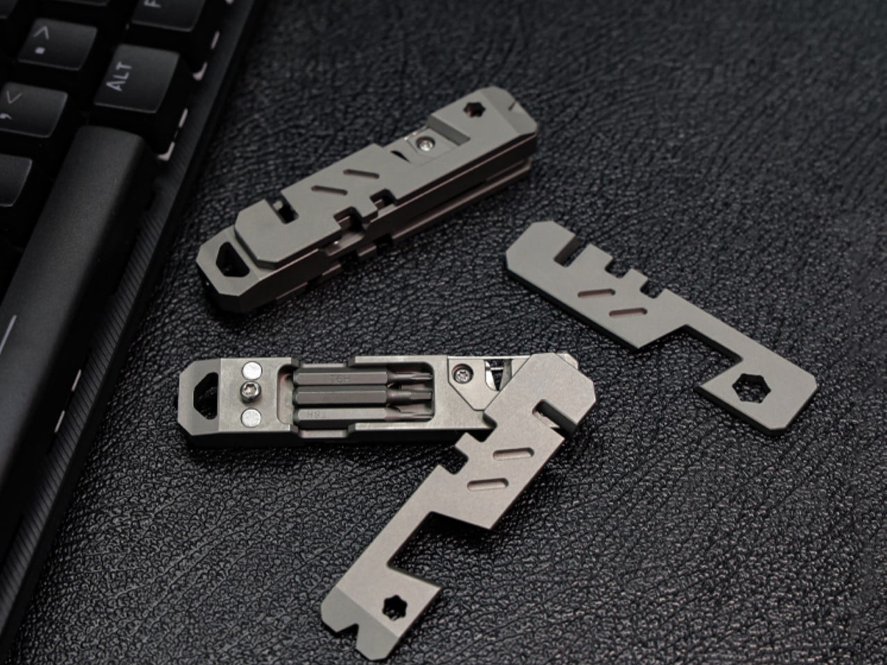 Despite its minimal size, the system is designed for high torque and long-term durability. A dual-lock gear mechanism efficiently transfers force without play, while a flip-based directional control replaces fragile thumb levers, reducing complexity and potential failure points. The modular configuration allows the tool to be adapted into T-, L-, or I-shaped formats using extension bars, optimising leverage and reach. Manufactured from GR5 titanium with hardened M390 steel gear teeth, the Titaner EDC Ratchet System combines corrosion resistance, structural integrity, and refined mechanical performance in a compact, purpose-driven design.