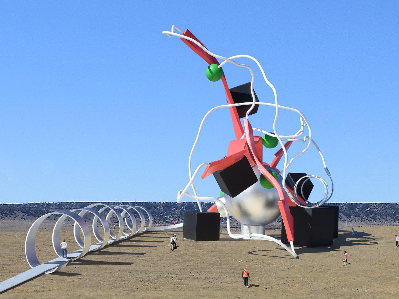 Michael Jantzen’s Folded Protein Molecule Research and Exhibition Center is part of his Fantasy Art, Architecture, Science series and proposes a facility where scientists researching protein folding could work and exhibit findings. The twist is that the entire complex is shaped like an exploded protein diagram, using the same coils, arrows, and rods that researchers use to visualize molecules. The building becomes its own subject matter, scaled up so you can walk through it.