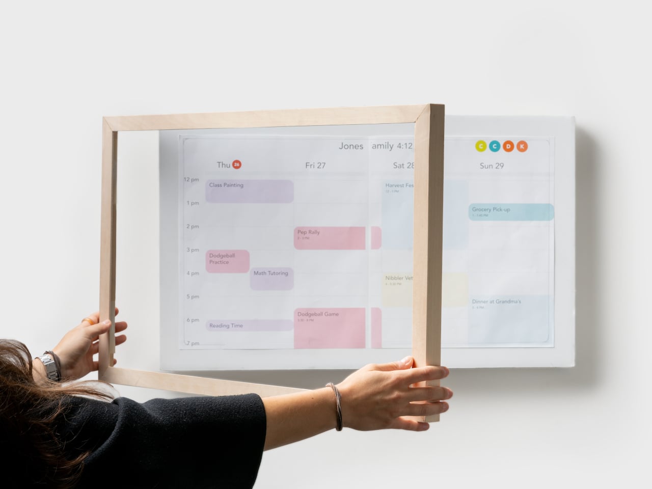 Shared calendars scatter across phones, sticky notes live on the fridge, and whiteboards never quite get updated. Most attempts to centralize family logistics involve smart displays that look like tablets or small TVs bolted to the wall, clashing with the rest of the room. A shared calendar deserves to be visible, but not at the cost of turning your kitchen into a control room with glowing screens and exposed cables.