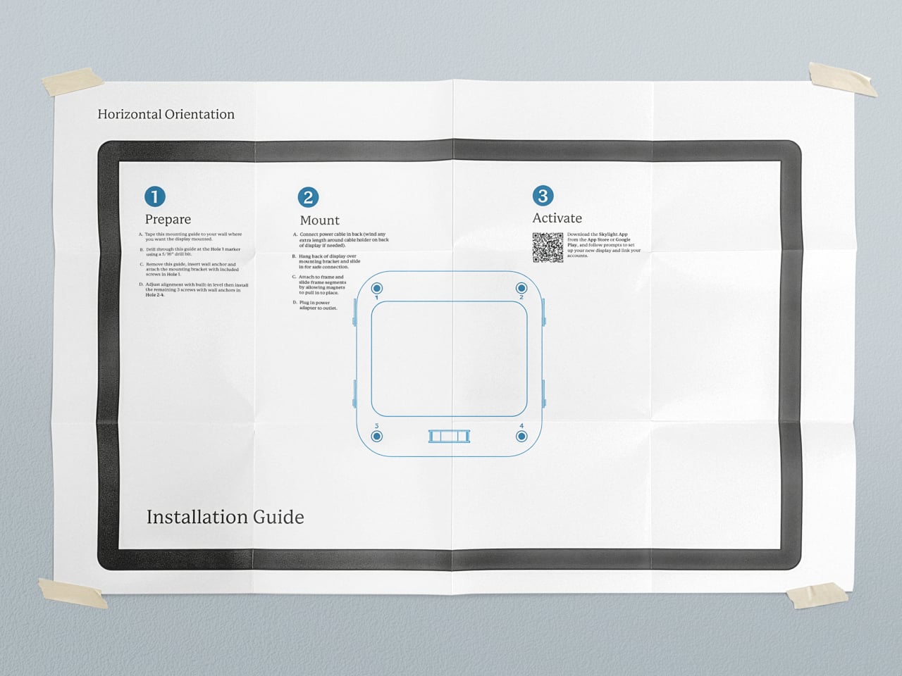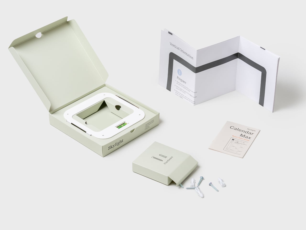 The mounting system uses a dedicated wall plate with cable routing, so once it is up, the calendar sits cleanly with minimal visible wiring. The packaging and installation guide are designed to make the process approachable, more like hanging a large frame than installing AV equipment. That matters when the person putting it up is more interested in family logistics than tech tinkering.