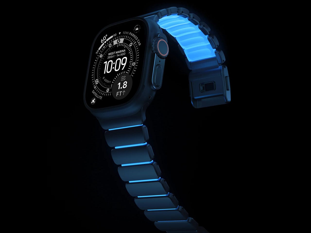Getting a watch band for your Watch Ultra just got interesting with Nomad’s latest addition to the Stratos Band line-up. After the success with the custom fit band designed for the Ultra in titanium finish and the FKM links, which is more comfortable to wear and touch, this watch band is irresistible. Coming in a fluoroelastomer cast that glows in Tron-like hues, the band demonstrates how “performance and fun can happen at the same time.” Nomad calls it the Icy Blue Glow version, and it’s a limited-run creation that pairs rugged durability with understated style.