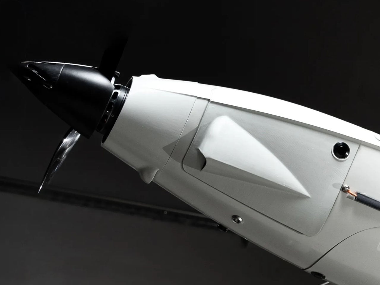 As a hybrid version of the Raybird, the drone is powered by an electric motor running on electricity generated by hydrogen fuel. The UAV has been reengineered to adequately distribute the space and weight of the hydrogen tank system onboard. Being hybrid, the drone is quieter in comparison to other combustion engine options, thus it makes a great surveillance aircraft.