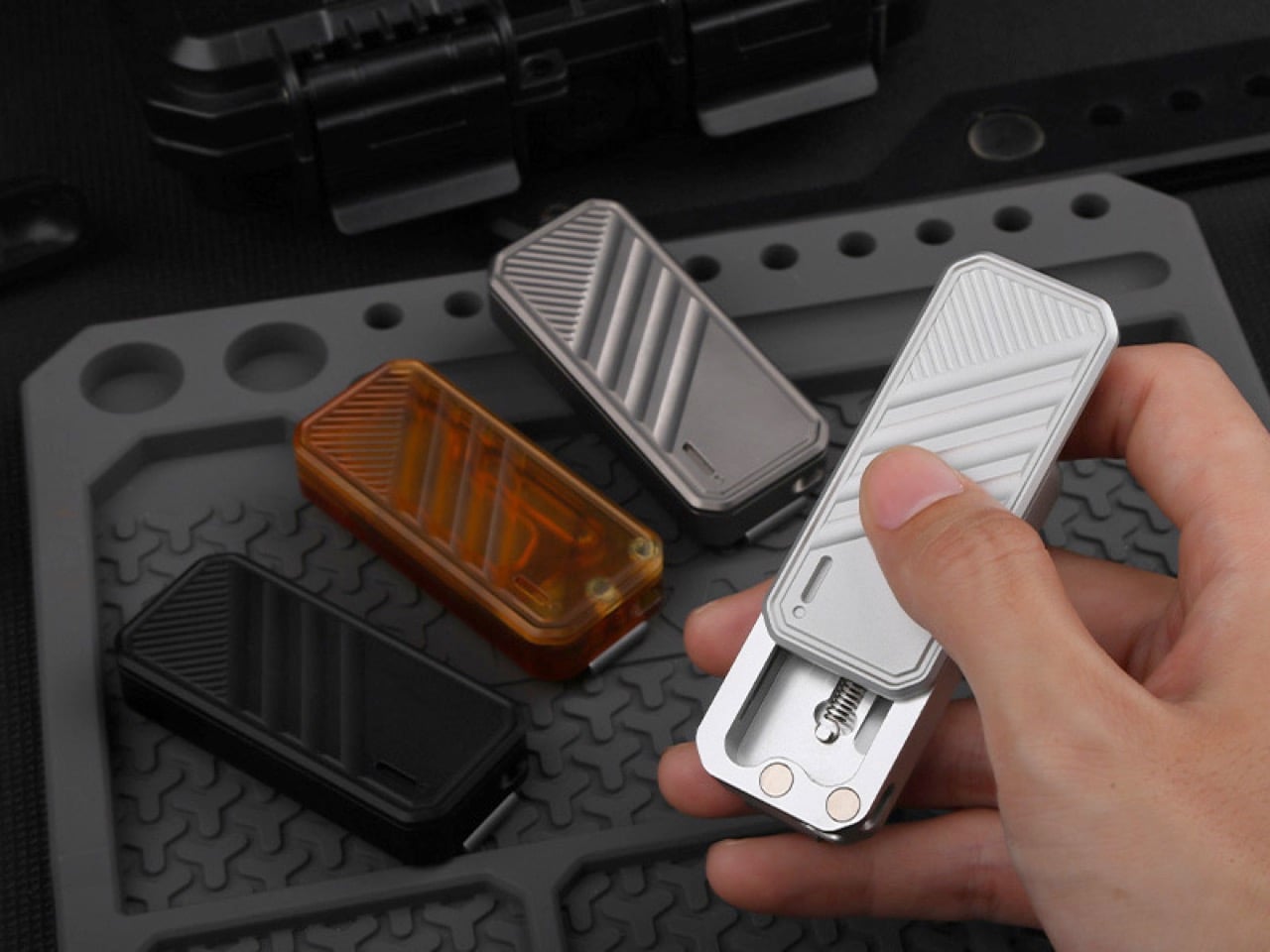 DeckShiv by ActMax takes a different approach entirely. This magnetic fidget slider utility knife was designed to stay in your hand long after the cutting is done. The sliding mechanism deploys and retracts a standard utility blade, but the real story lives in the magnetically guided movement itself. Every slide forward feels intentional, controlled, deliberate. Every return journey happens smoothly, pulled back by magnetic force into a soft, satisfying click. It’s a utility knife that doubles as a fidget device, built for people who appreciate tactile feedback in their everyday tools.