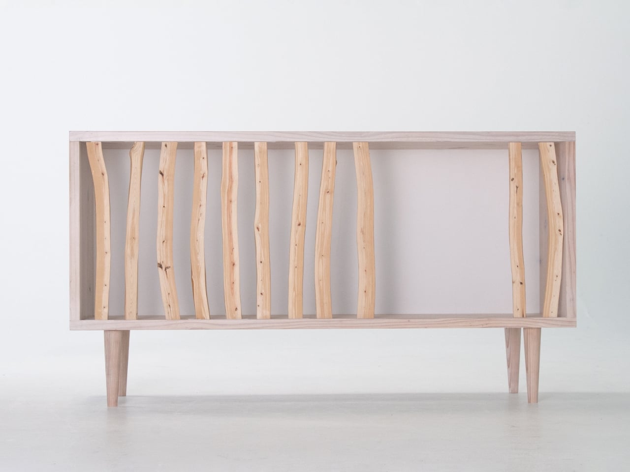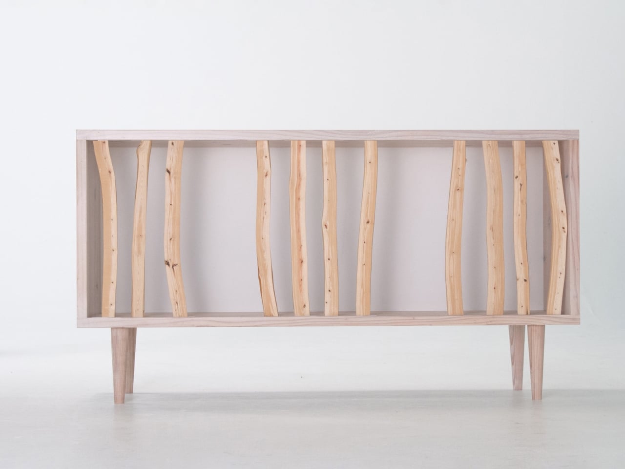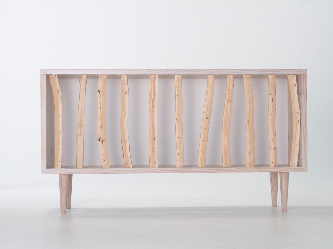 What makes the Hayashi Cabinet genuinely clever is its movability. Each branch can slide left or right along the cabinet frame, letting you customize the openness or privacy of your storage space. Want to show off that vintage record collection? Slide the branches apart. Need to hide some clutter? Push them together. It’s like having adjustable blinds, except way cooler and made of wood.