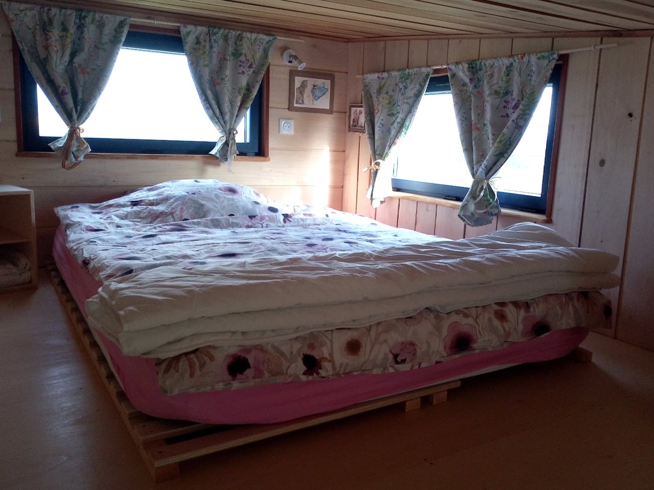 The result is Tiny Birdy, a 6-meter (20-foot) house on wheels that’s built on a double-axle trailer. At 4 meters high, it’s compact enough to navigate European roads without the hassle that comes with larger North American tiny homes, which can easily stretch to double the length. The exterior features knotty timber cladding that gives it a cabin-like warmth, with blue aluminum accents on the roof adding a playful touch. There’s even an exterior storage box for extra gear.