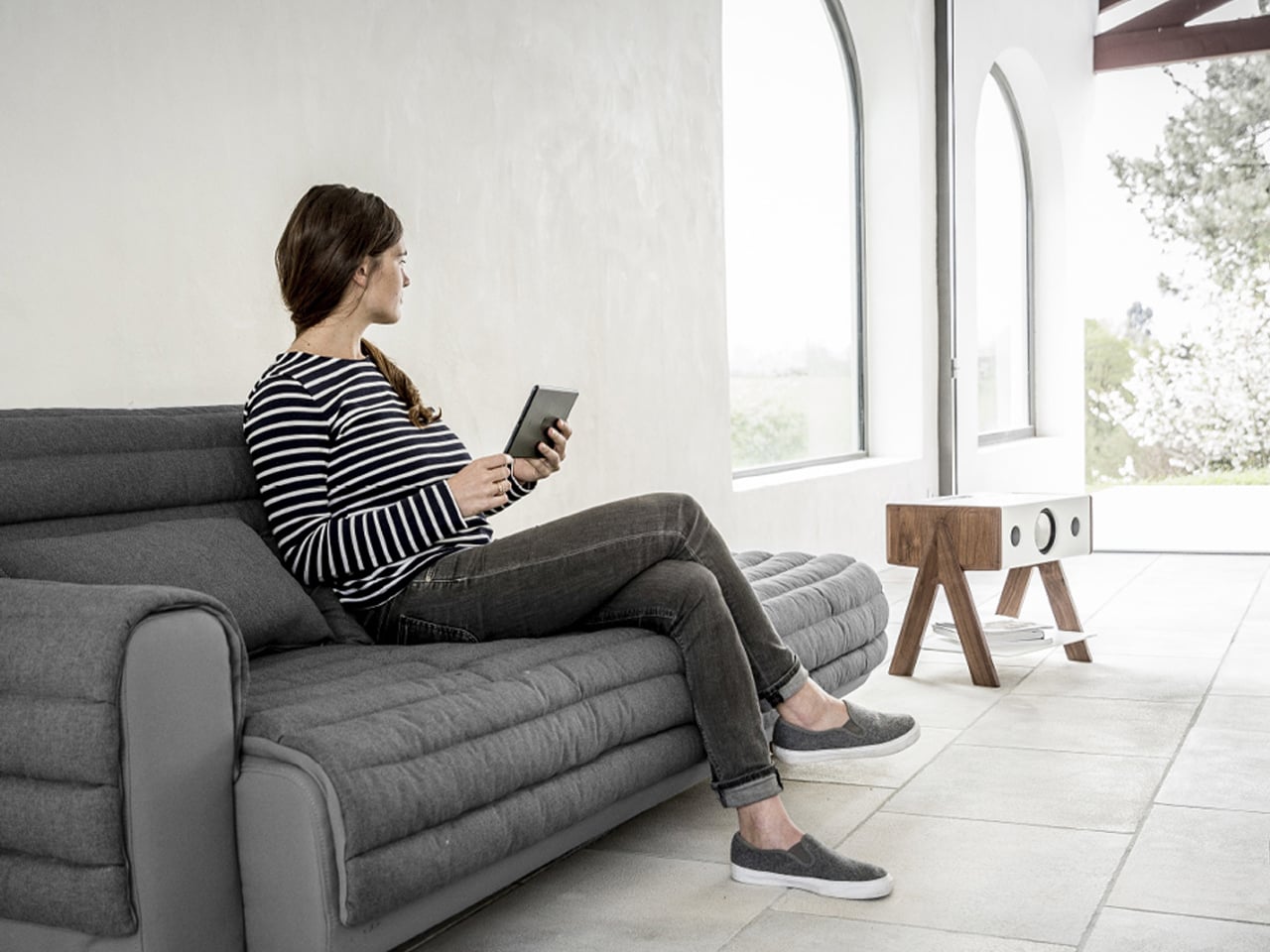 The Cube by French audio brand La Boite is a wireless high-fidelity loudspeaker designed to function as both an audio system and a compact coffee or side table. Measuring approximately 47 × 35 × 49 cm, its form allows placement in central living are as without additional floor space for separate speakers. La Boite’s patented acoustic architecture ensures consistent sound dispersion regardless of positioning, maintaining balanced volume and clarity across the room. The furniture-grade enclosure supports everyday use while housing integrated audio components.