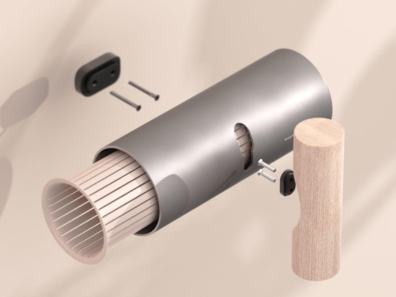 The pairing of a cool, matte cylinder with a warm wooden bar lets UMBRELLA+ slide between different moods. In neutral grey and light wood, it blends into minimal entryways. In bronze and dark wood, it feels warmer and more premium. In full blue, it turns into a playful graphic object. That flexibility lets the same form read as a quiet background or deliberate accent.