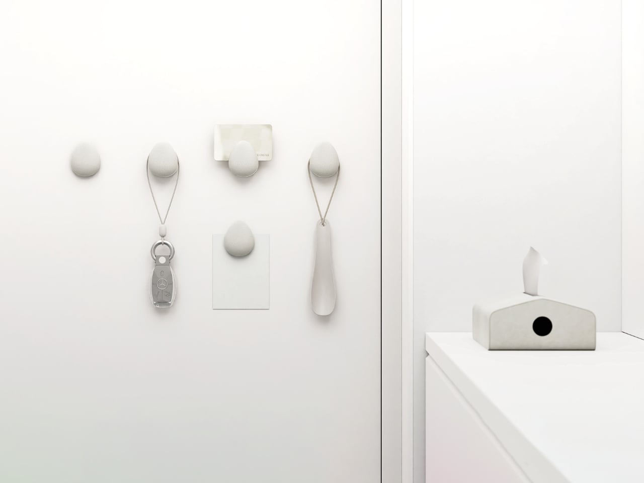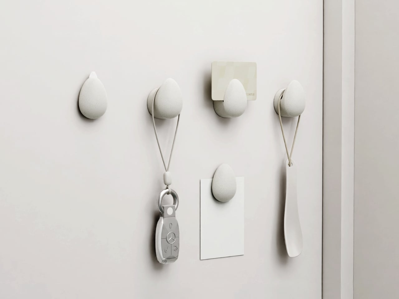 But here’s where it gets interesting. Those five eggs aren’t just decorative items you’ll stash away and forget. Each one serves a specific purpose at the threshold of your home, that chaotic zone where packages pile up and keys mysteriously vanish. One egg contains a ceramic-blade box cutter for safely slicing through Amazon deliveries. Others function as magnetic hooks and holders, perfect for hanging access cards, food waste sorting tags, car keys, or that shoehorn you’re always hunting for when you’re already late.