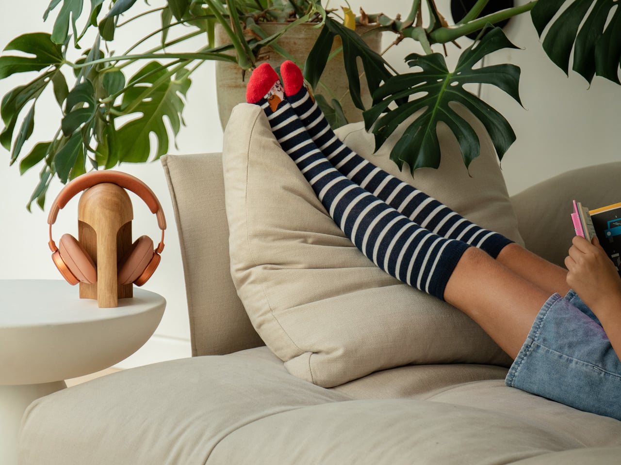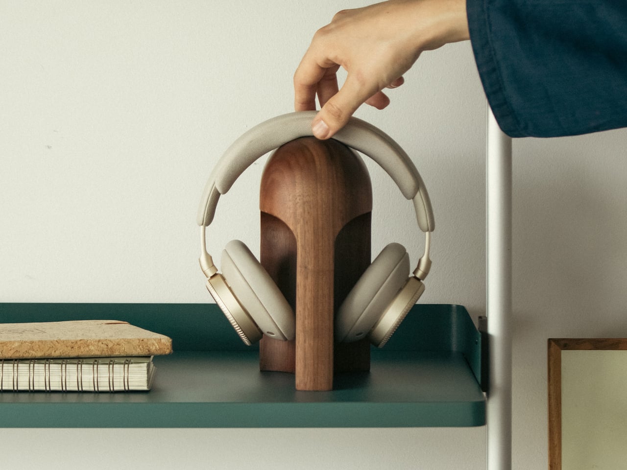 Reaching for headphones becomes a small, deliberate gesture instead of fishing them out from under papers. When you are done listening, they go back to the same place, the arc catching the headband and lifting the earcups off the surface. Over time, that simple habit keeps the desk clearer and the headphones in better shape, protected from pressure points or deforming pads that come from stacking other things on top.