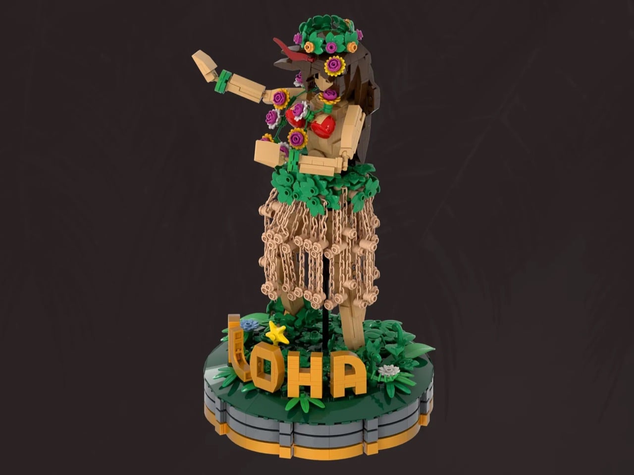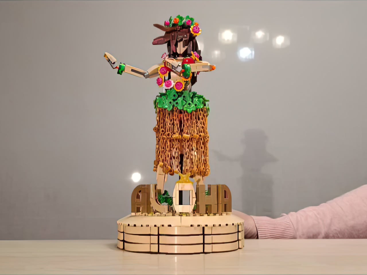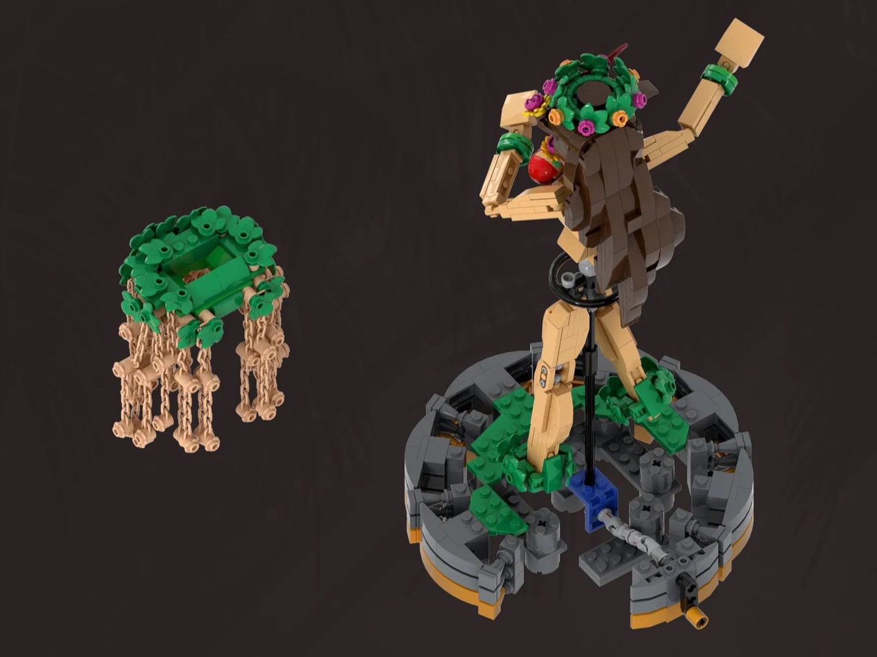 LEGO builder SuperDuperD has now brought this nostalgic icon into the world of bricks with a stunning mechanical recreation. The Dancing Hula Girl is not just a static display piece. Through an ingenious crank mechanism hidden in the base, this 1,070-piece MOC captures the authentic swaying motion of the original dashboard dolls, complete with a flowing chain-link grass skirt that moves naturally with each turn.