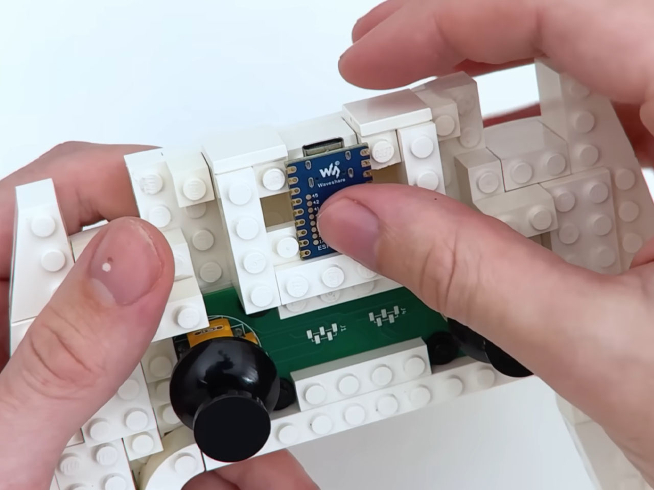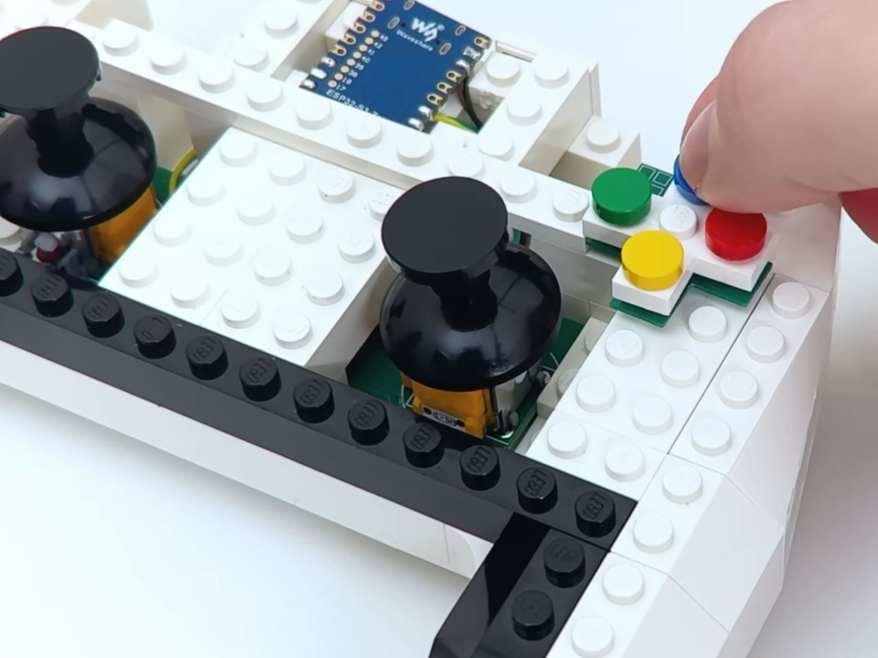 The brain of the LEGO controller is the Waveshare ESP32-S3-Zero development board, which lies just beneath the thin brick layer. The sorcery is done by converting the button action into Switch understandable input, letting you play games just like you would with the official controller. If we go more technical, the DIY gamepad acts as a USB HID device. To make the button inputs precise, he put a lot of time into crafting the A, B, X, Y cluster, the D-pad, Home, and Capture bricks.