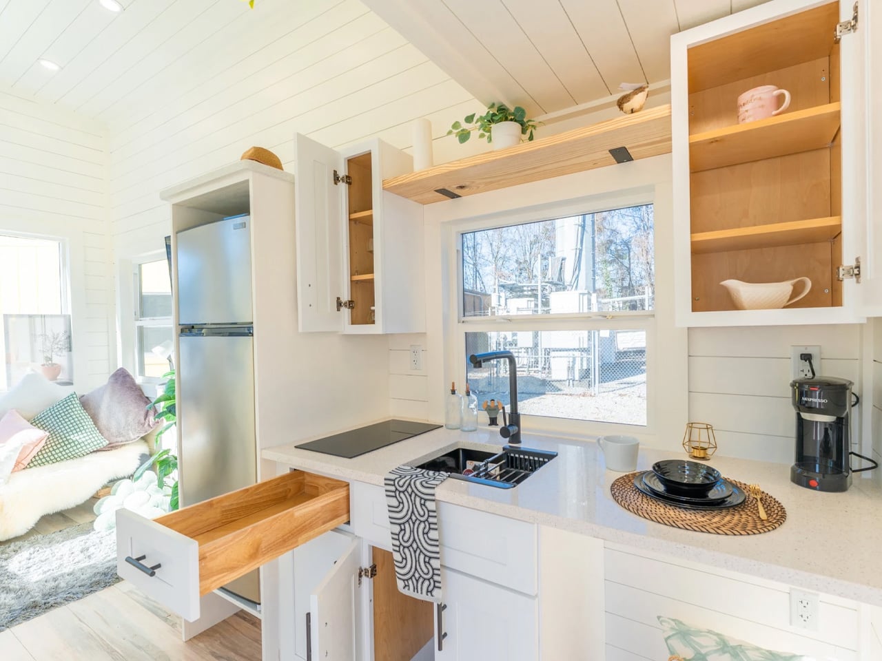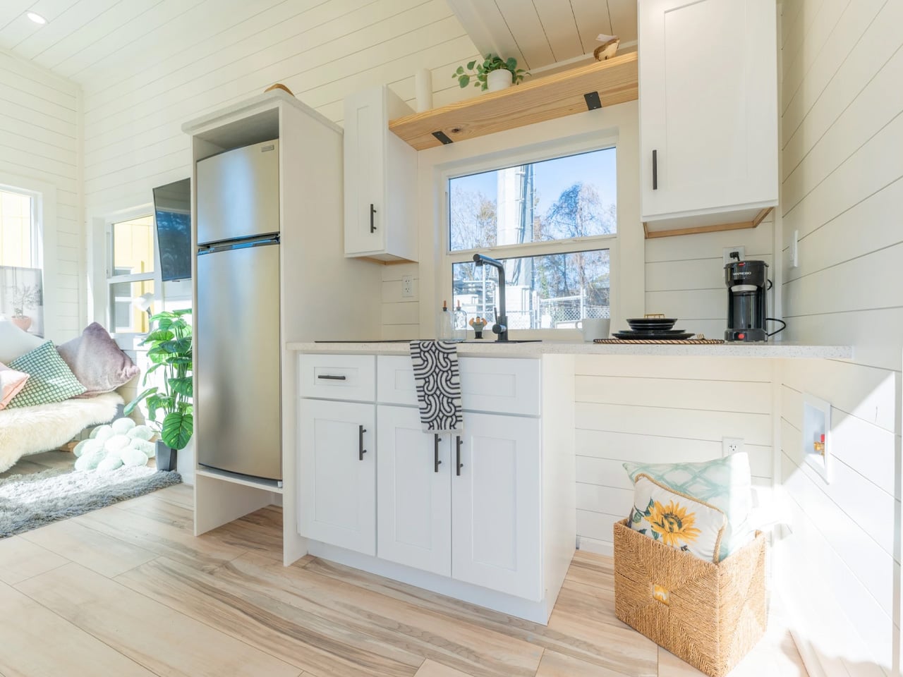 At 20 feet in length, the Sora 20′ offers significantly more living space than the original 16-foot model. This extra footage translates into practical improvements throughout the home, allowing for more comfortable accommodations without sacrificing the cozy feel that draws people to tiny living. The additional space has been thoughtfully distributed to enhance functionality in key areas, making the home suitable for extended stays or permanent residence rather than just weekend getaways.