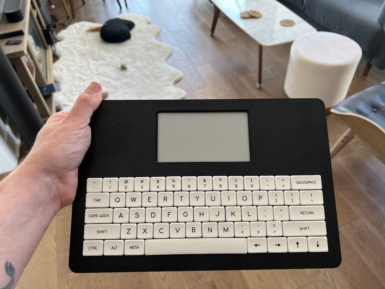 The 60% mechanical keyboard uses Kailh Choc Pro Red switches, and every switch and keycap is hot-swappable. That means you can tune the feel and sound to your taste, or replace a dead switch without tossing the device. It feels more like a compact enthusiast board that happens to have an e-paper screen attached than a sealed writing appliance you cannot repair or modify.